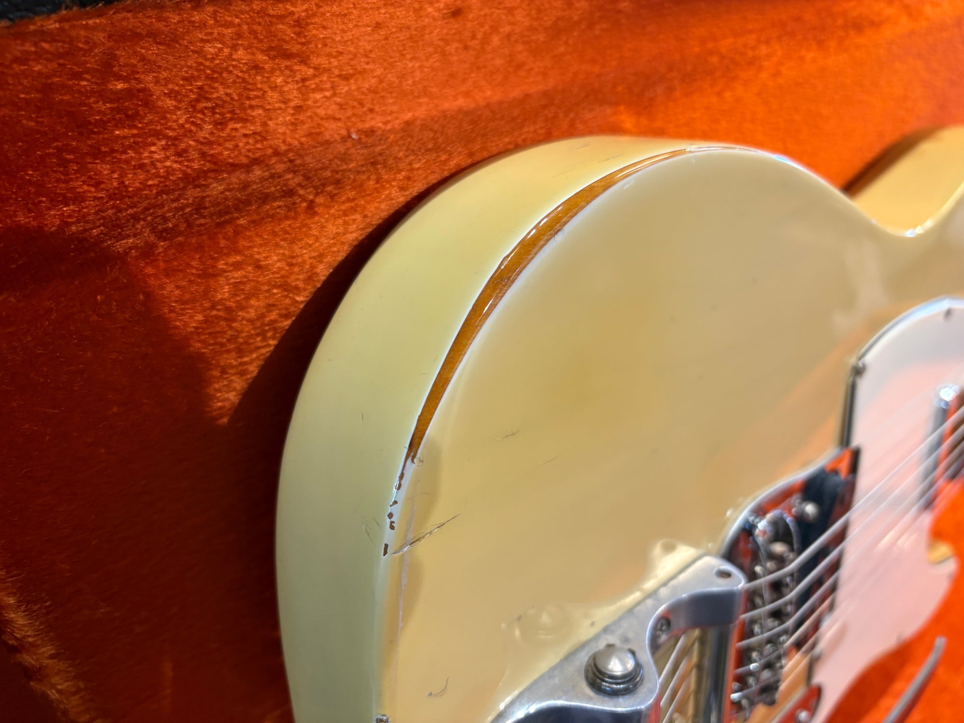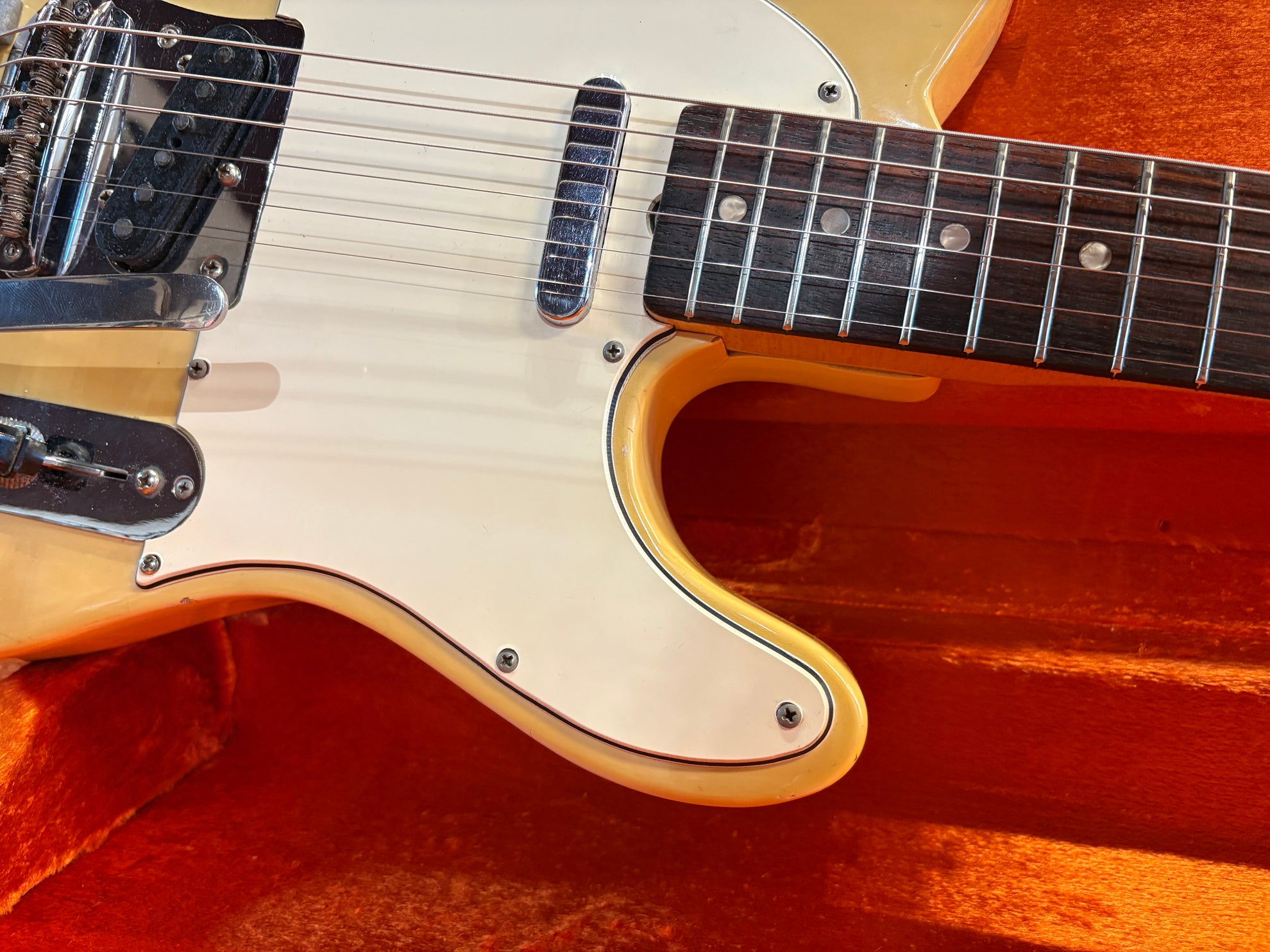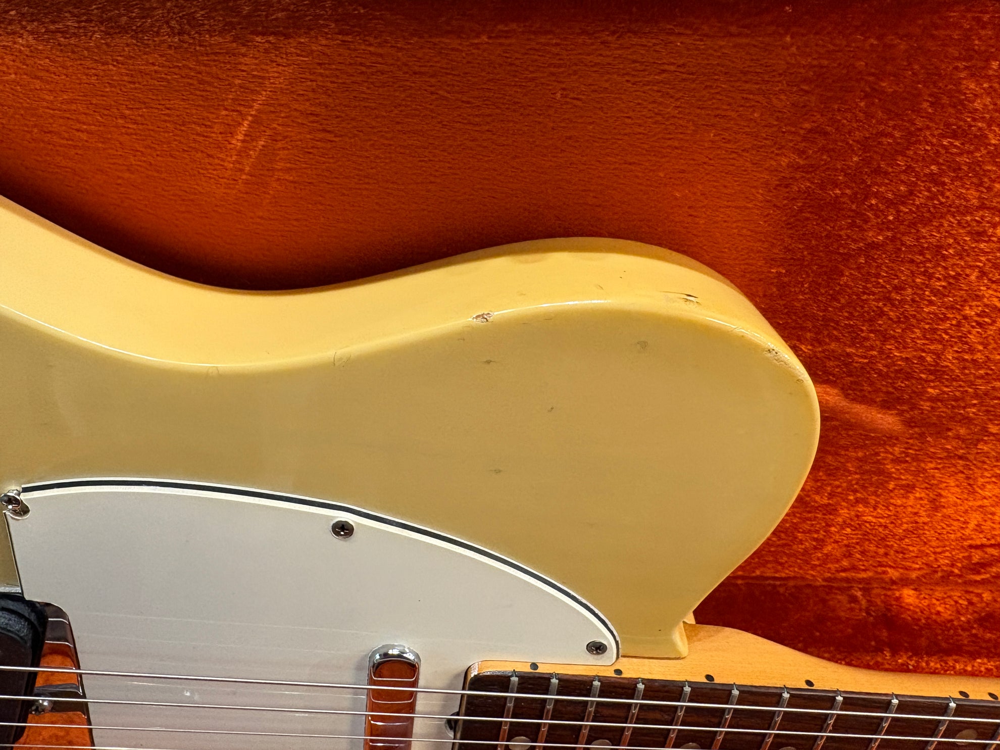 1969 Fender Telecaster Bigsby Blonde, in excellent vintage condition. Factory original Bigsby. All original aside from both of the original pickups have been rewound, the bridge pickup was rewound by Andreas Klopmann. Super lightweight, even with the Bigsby! A fantastic player. Includes NOHSC.
