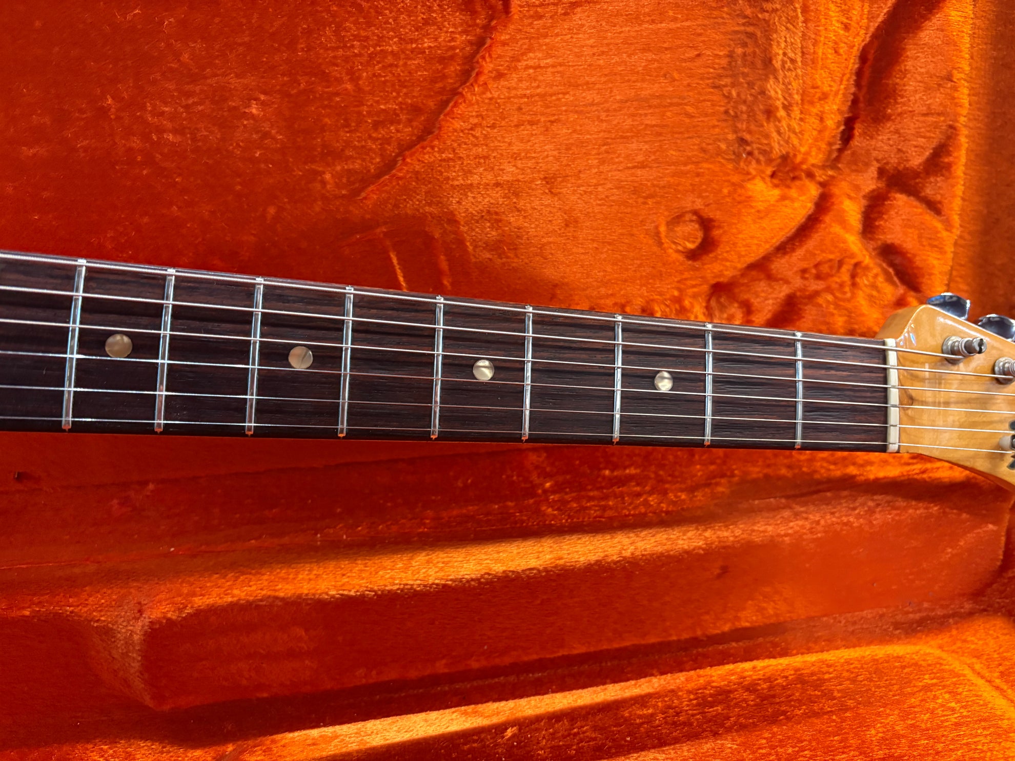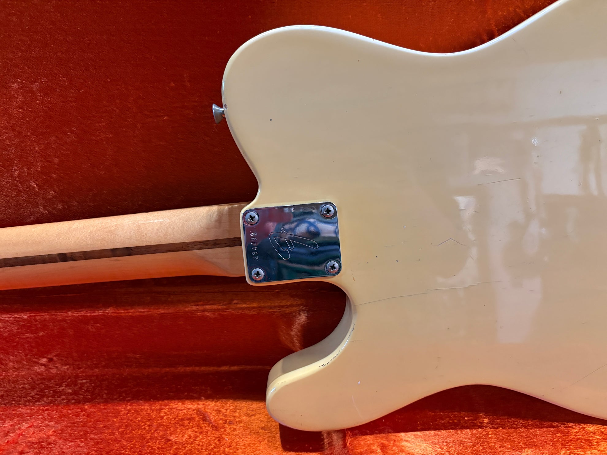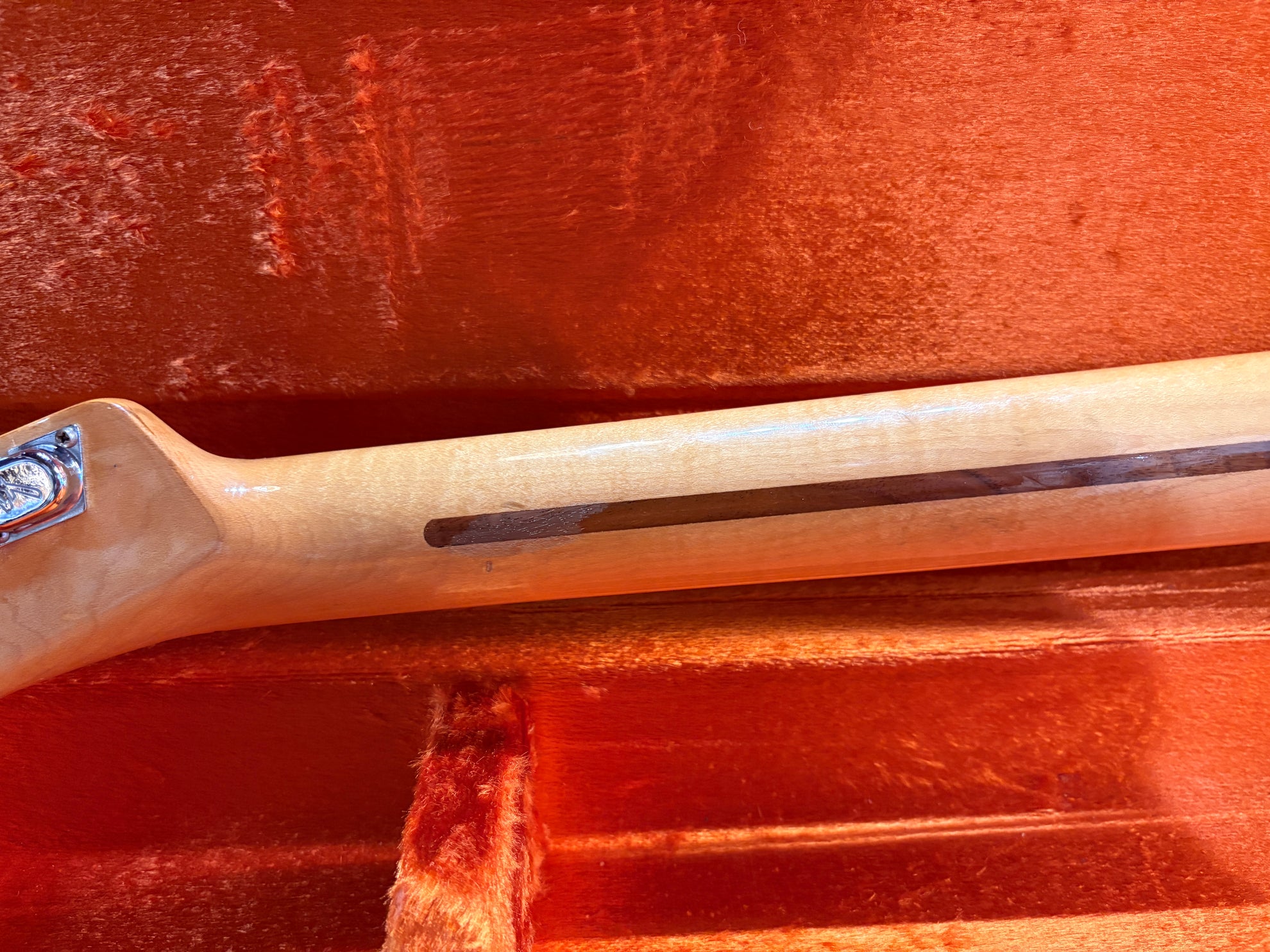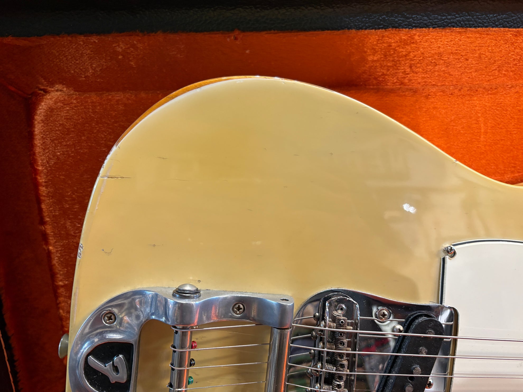 1969 Fender Telecaster Bigsby Blonde, in excellent vintage condition. Factory original Bigsby. All original aside from both of the original pickups have been rewound, the bridge pickup was rewound by Andreas Klopmann. Super lightweight, even with the Bigsby! A fantastic player. Includes NOHSC.