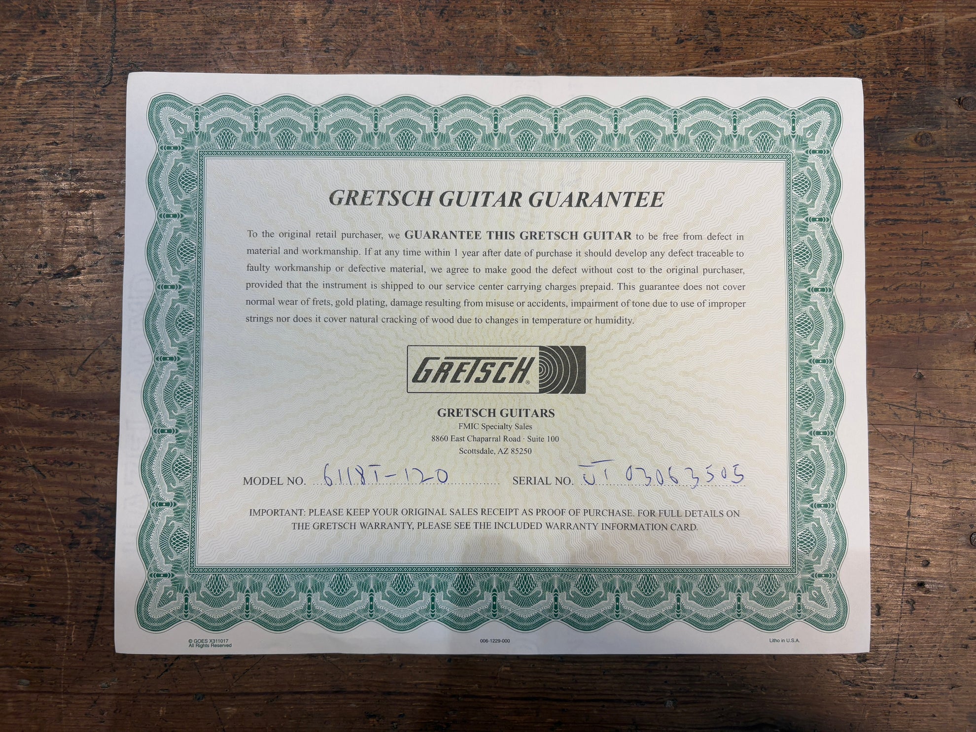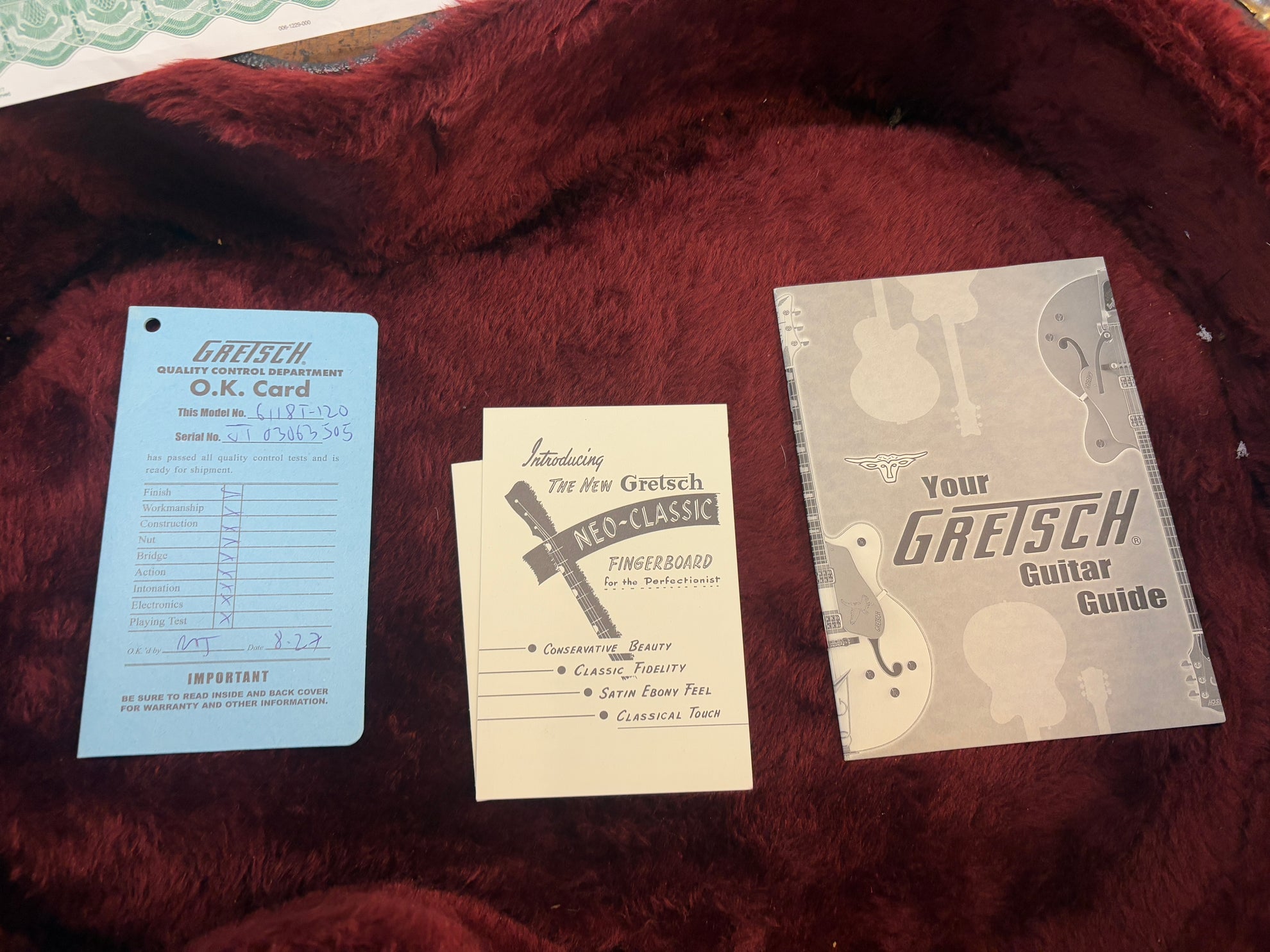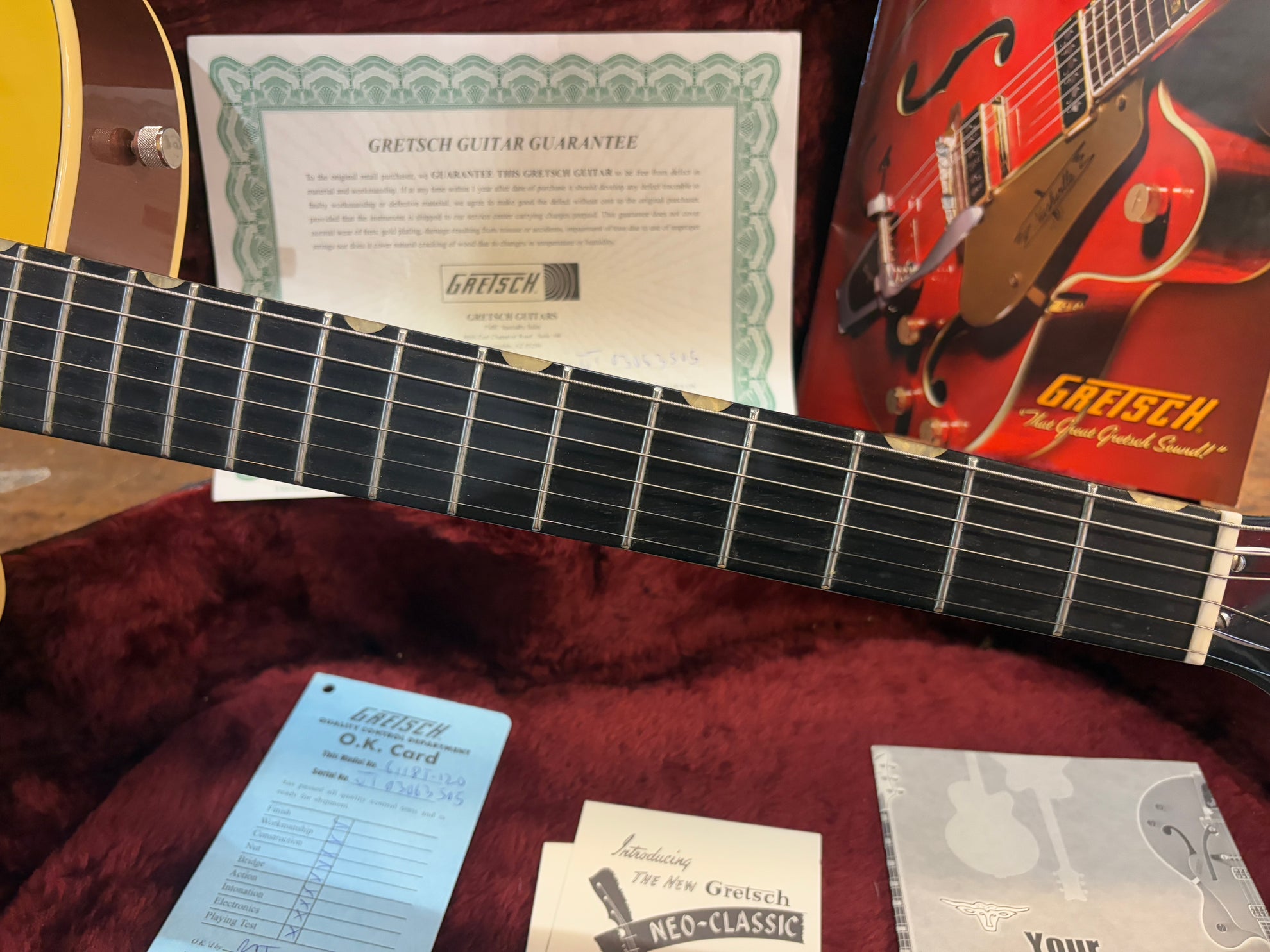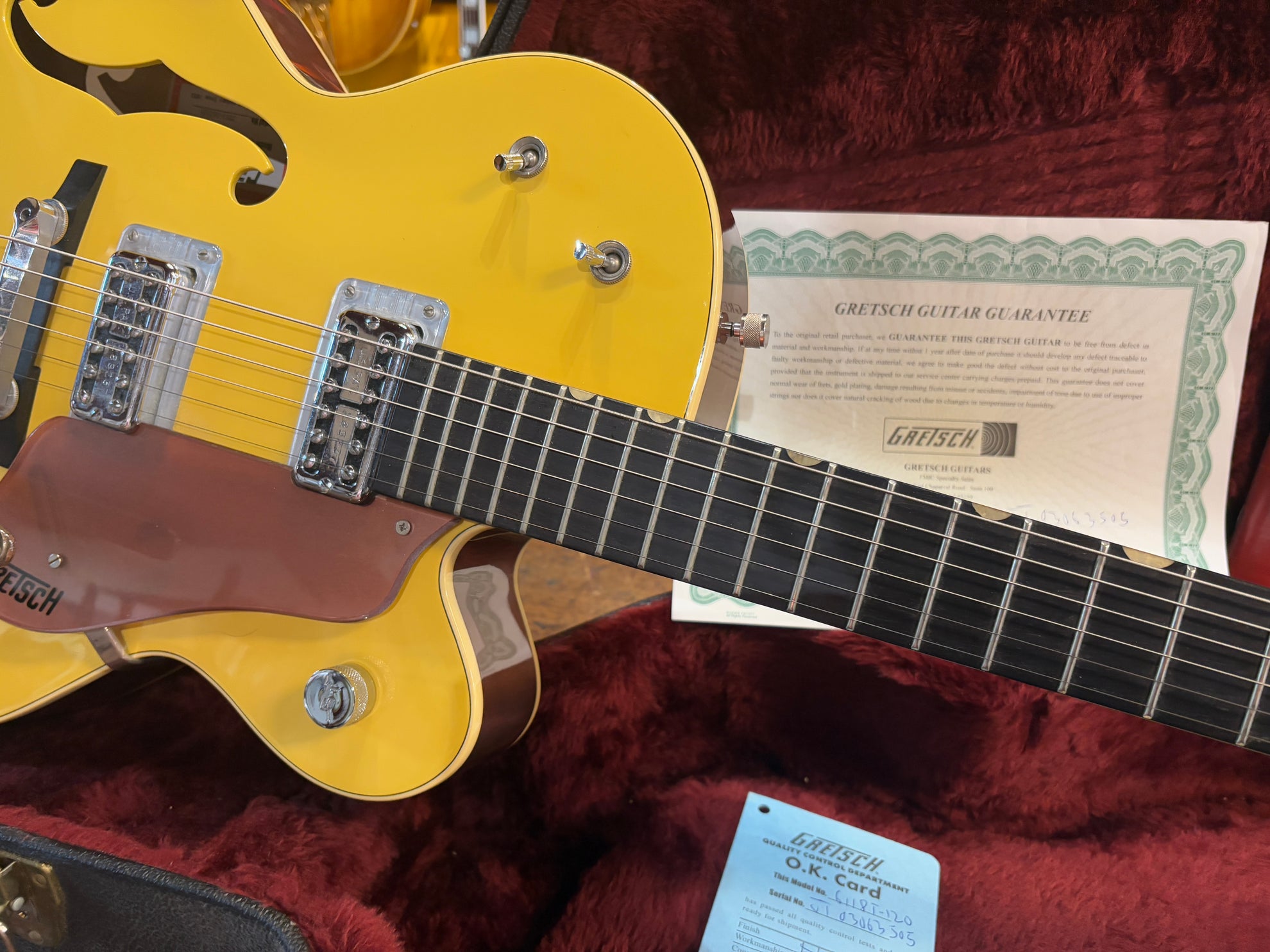 2003 Gretsch G6118T-120 120th Anniversary Bamboo Natural, in excellent condition. Includes OHSC and pictured paraphernalia.
