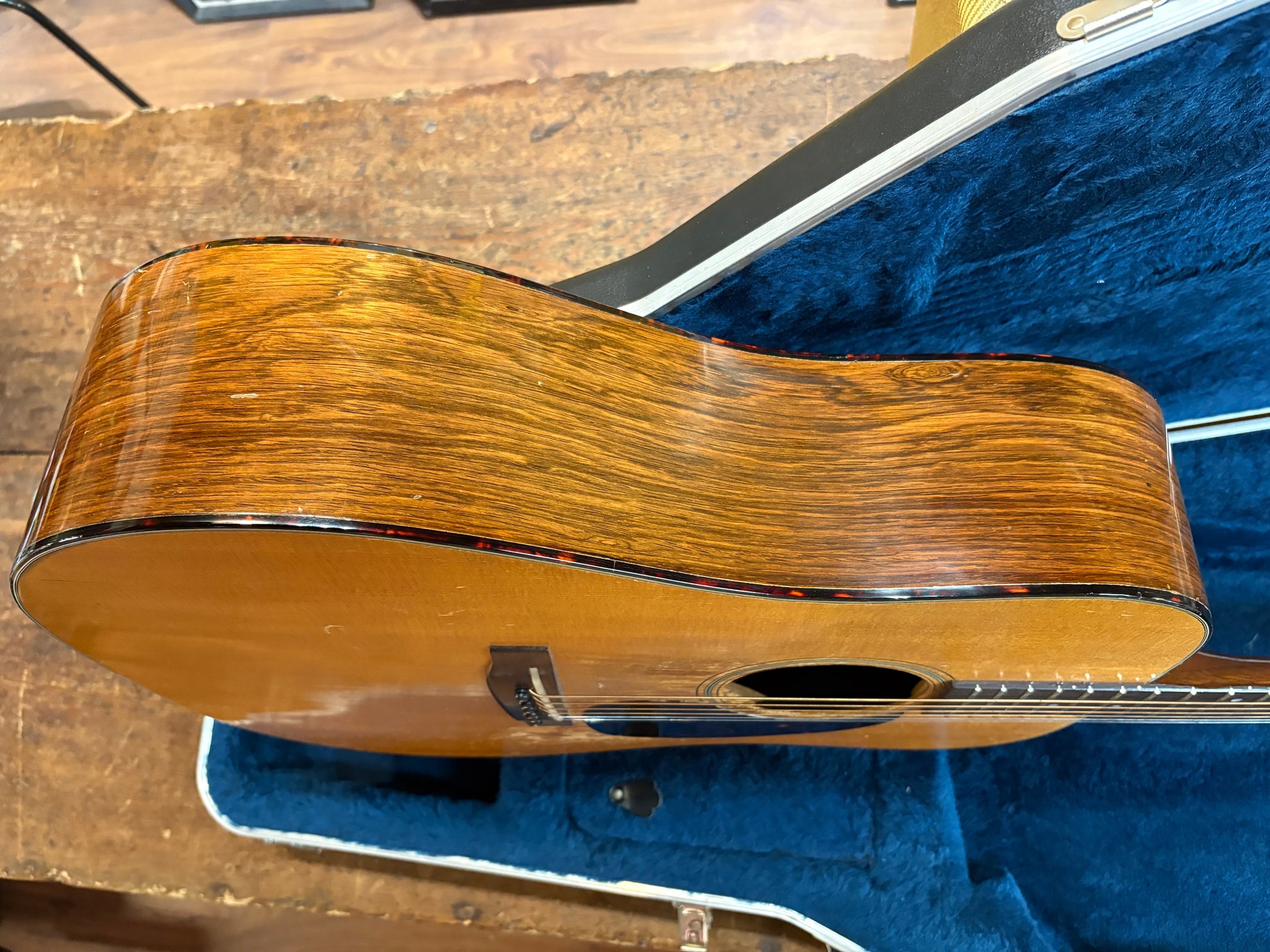 1965 Martin D-21 Natural, in very good vintage condition. A very cool model - not often seen, sounds like a D-28 - looks like a D-18! Constructed with a Sitka Spruce top and gorgeous Brazilian Rosewood back and sides. All original aside from a professional re-fret, new nut and saddle and changed tuners, which are a set of vintage Grovers. Previously had a pickup installed, which has been removed. Sounds phenomenal, crack and repair free. Includes a NOHSC.