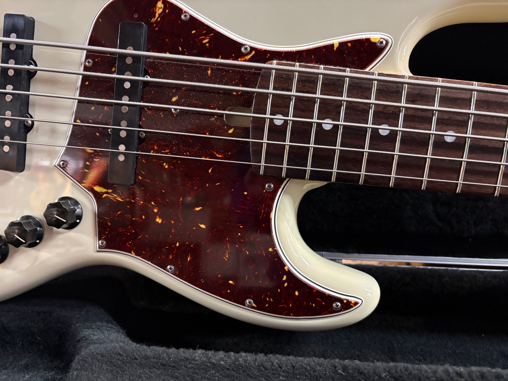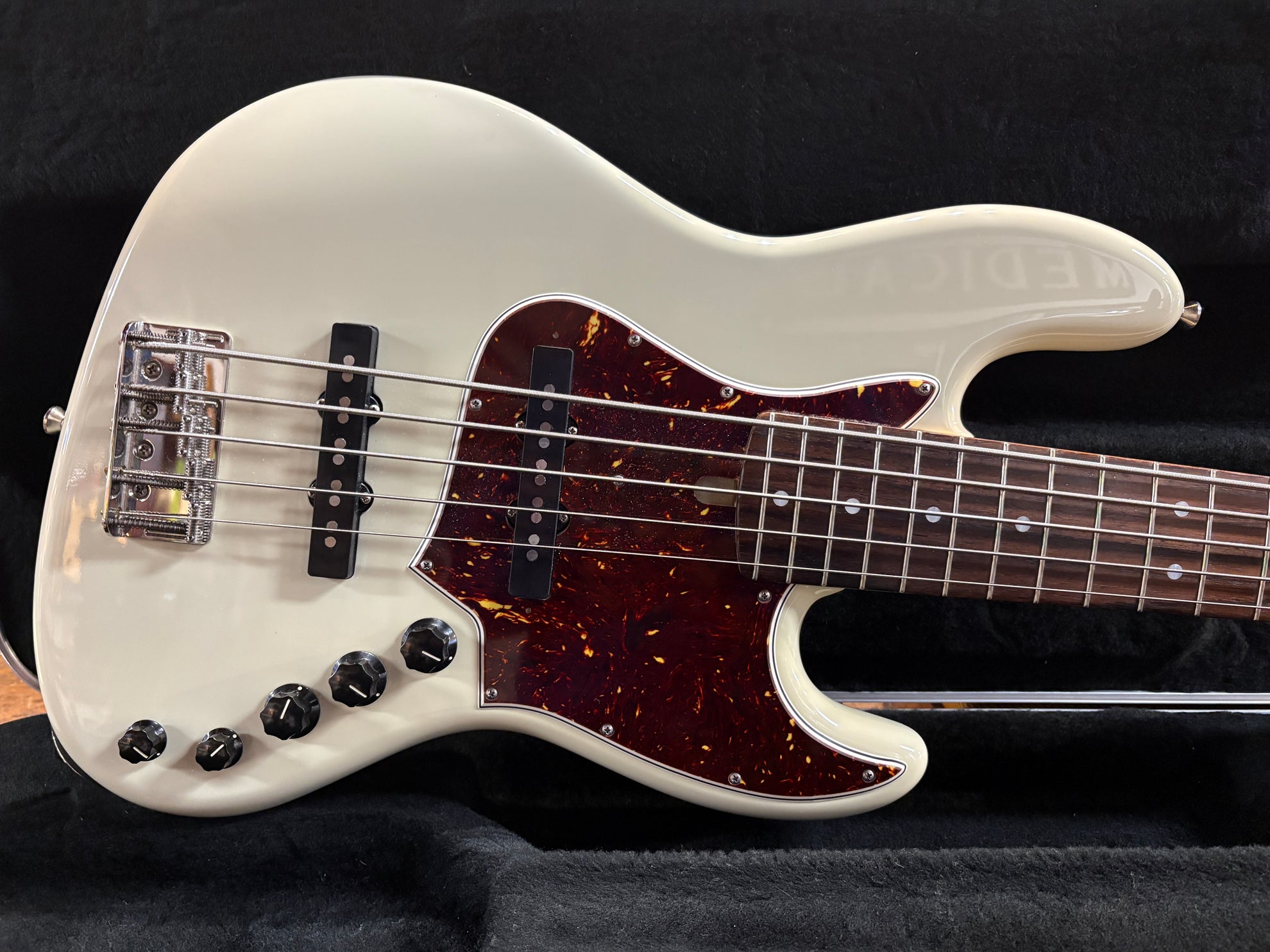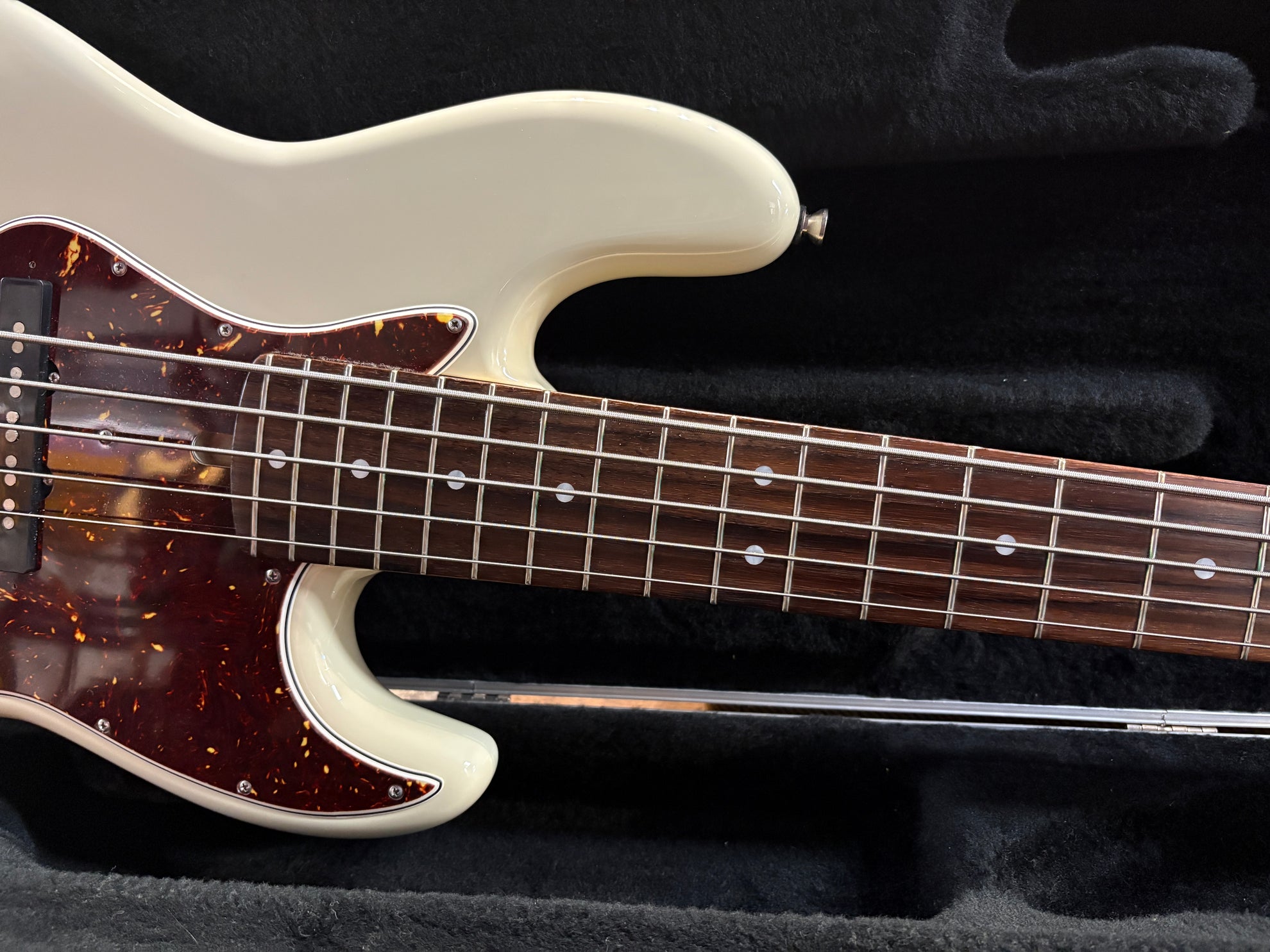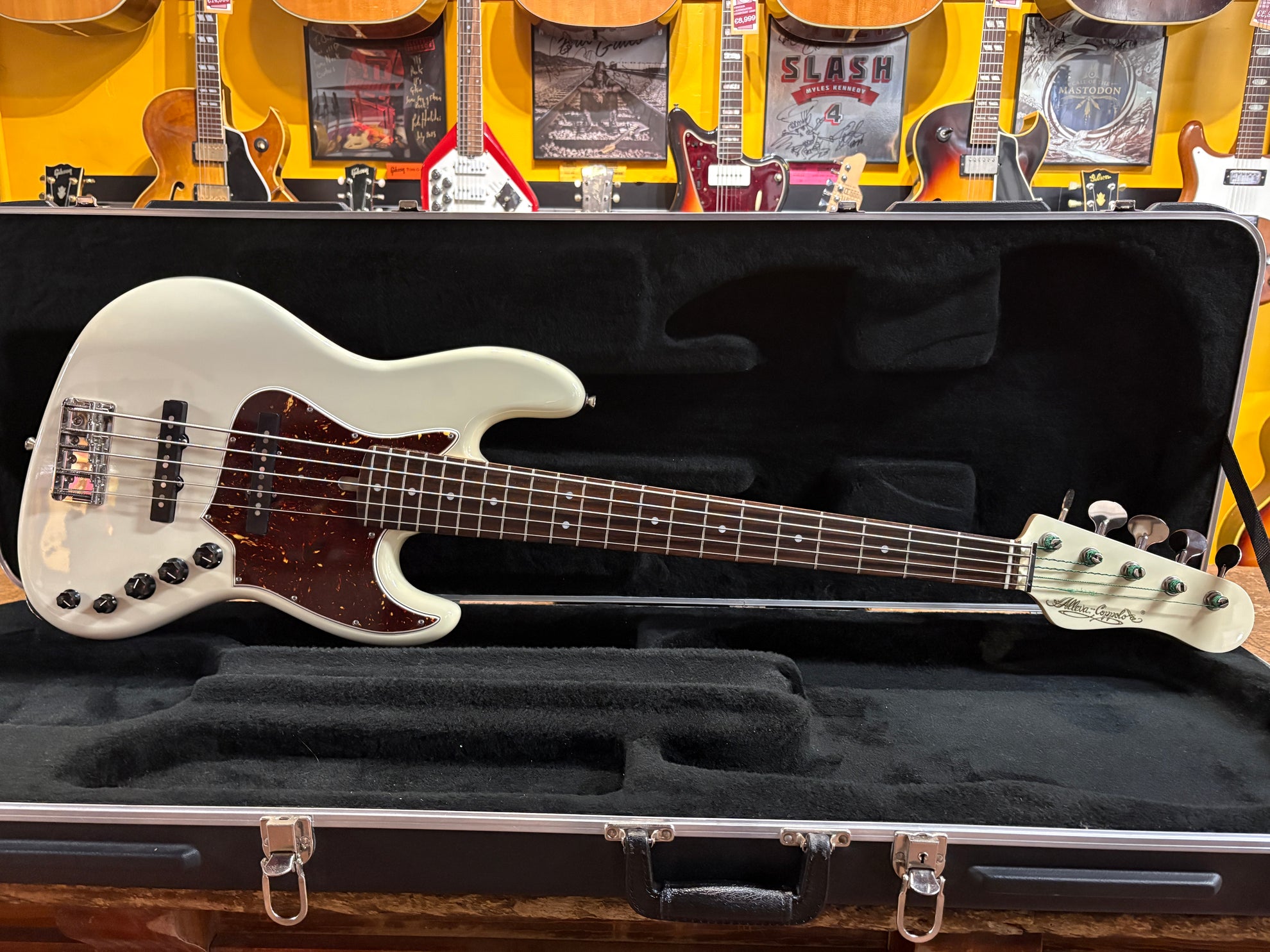 2023 Alleva Coppolo LG5 Standard 5-String Aged Olympic White, in virtually as new condition. A truly outstanding machine, handmade in the US. Stock Alleva Copoolo pickups, complete with 2-Band preamp. Hipshot Ultalite tuners and 19mm bridge spacing. Includes original Protec Contego Gig Bag.