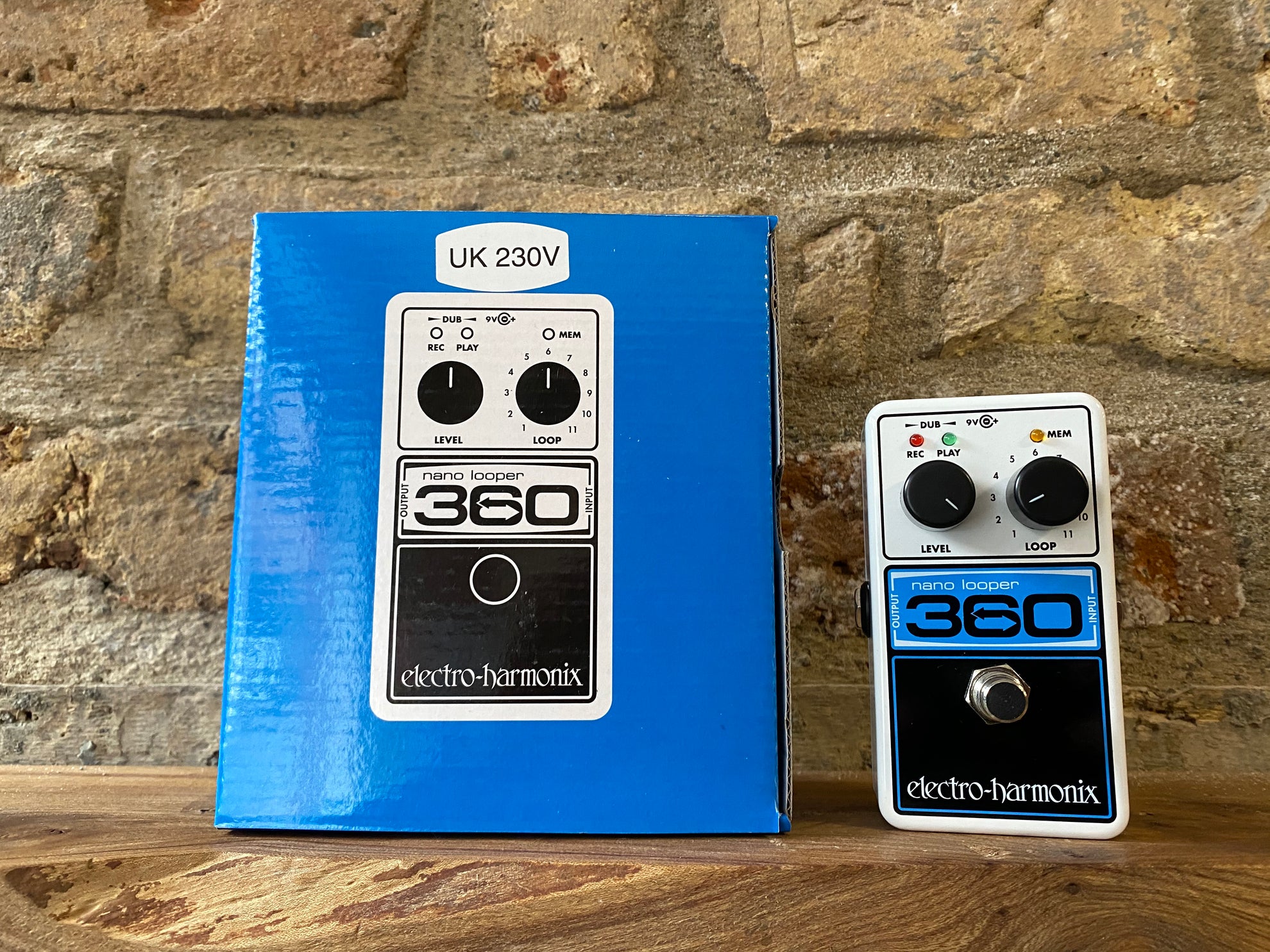 "The EHX Nano Looper 360 takes the simple, easy-to-use format of a single pedal looper and adds 11 memory slots for storage of your favorite creations. With 6 minutes of high-quality loop recording time, unlimited overdubs, and easy undo/redo functionality, Nano Looper 360 is compact looper for any pedalboard.