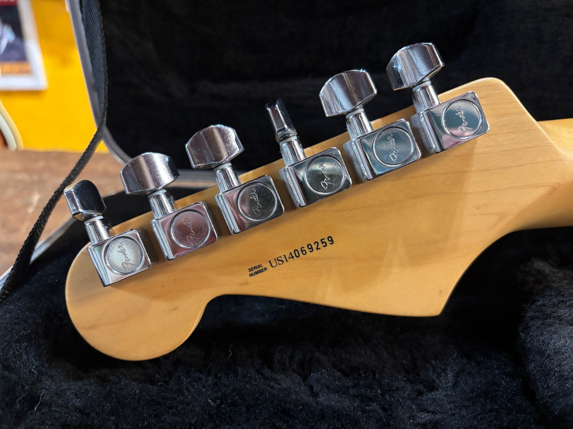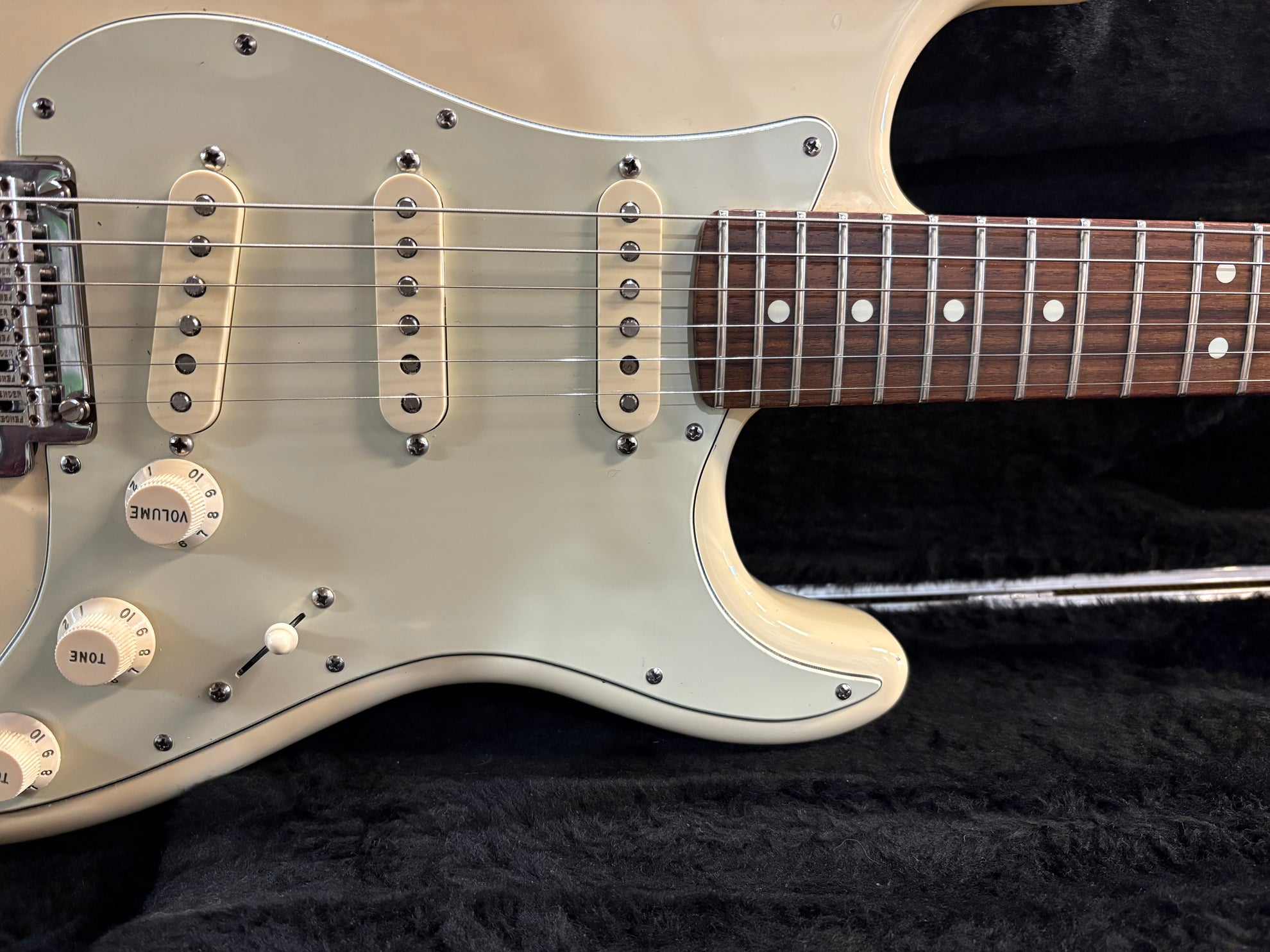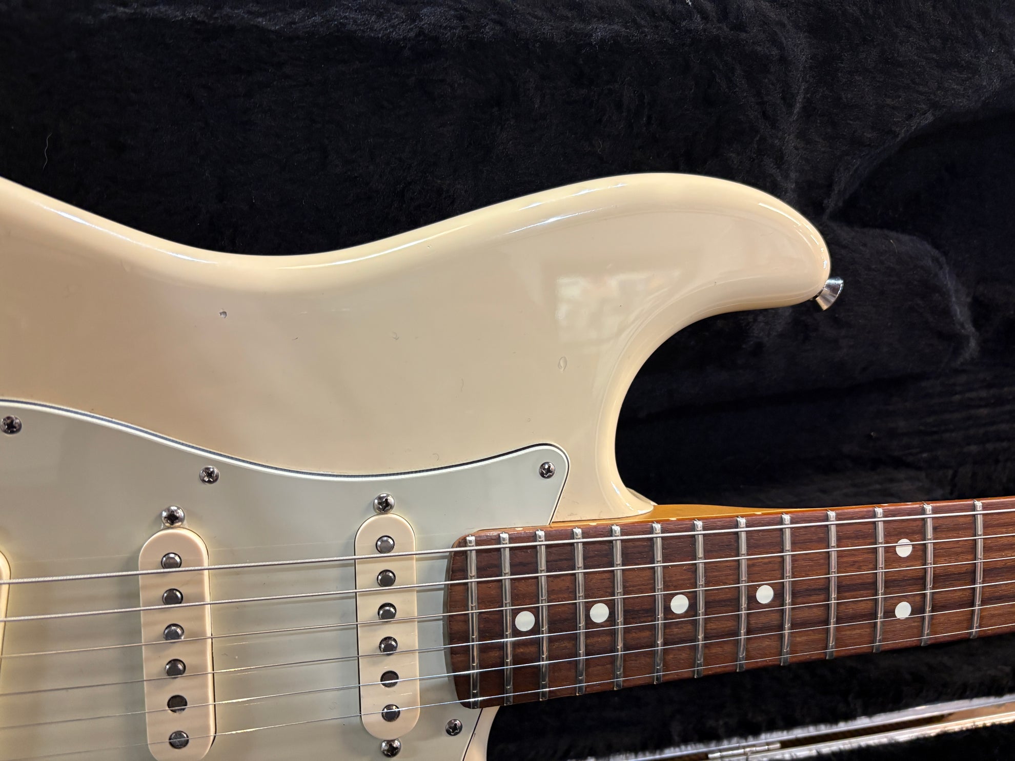 2014 Fender American Standard Stratocaster Olympic White, in overall good used condition - some playwear, pictured. Has just had a full fret level and is playing great. Stock Custom Shop Fat '50's pickups. Includes OHSC.