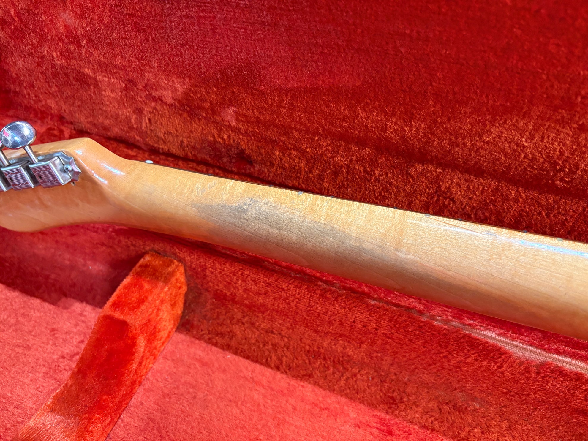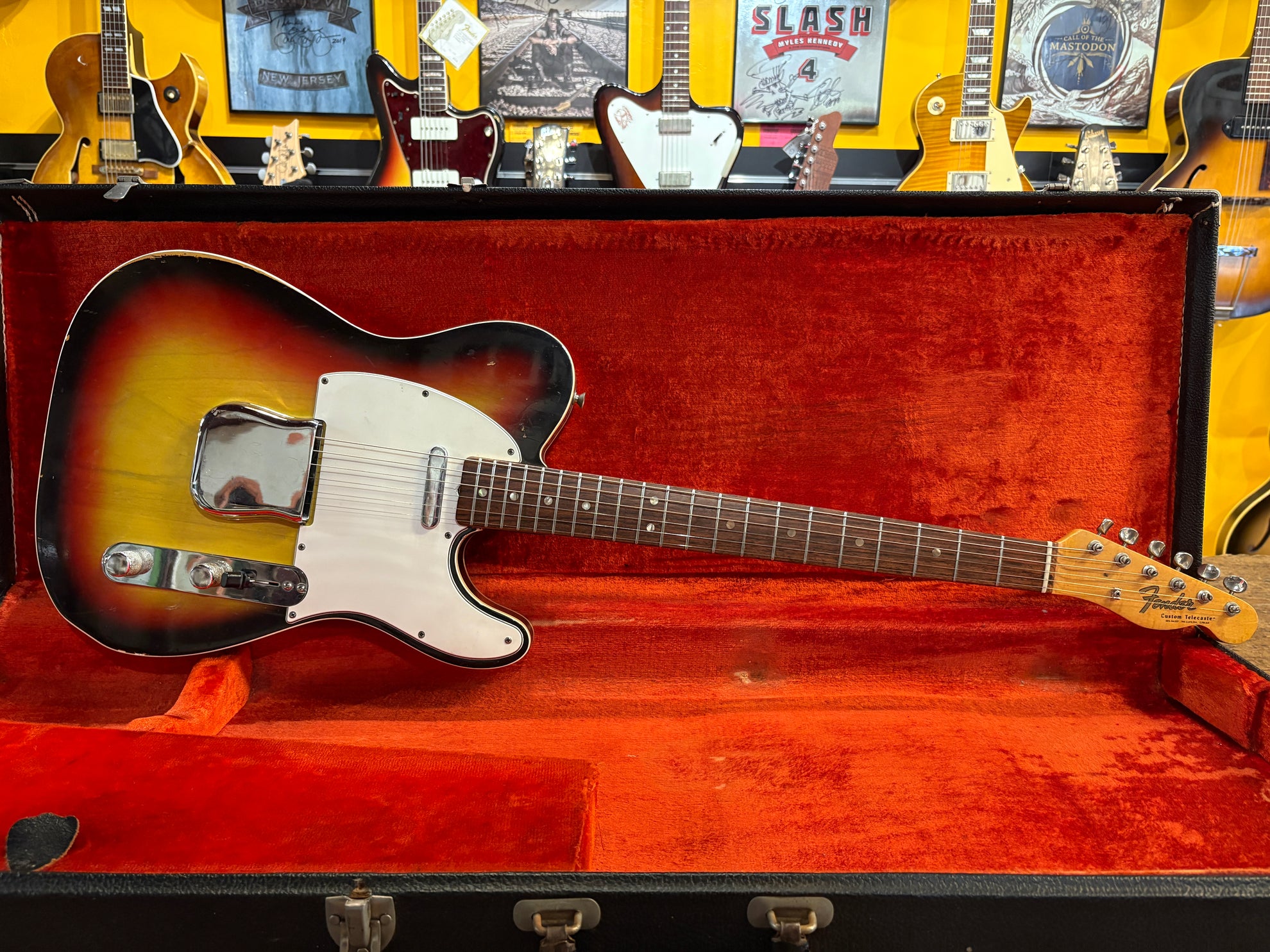 1966 Fender Custom Telecaster Sunburst, in very good vintage condition. We're thrilled to have this exceptionally rare model in. All original aside from a previous humbucker route, that's been professionally filled and a changed three way switch. Previously changed tuners, originals are back on with conversion bushings. The original pickups sound fantastic. Includes OHSC and original switch.