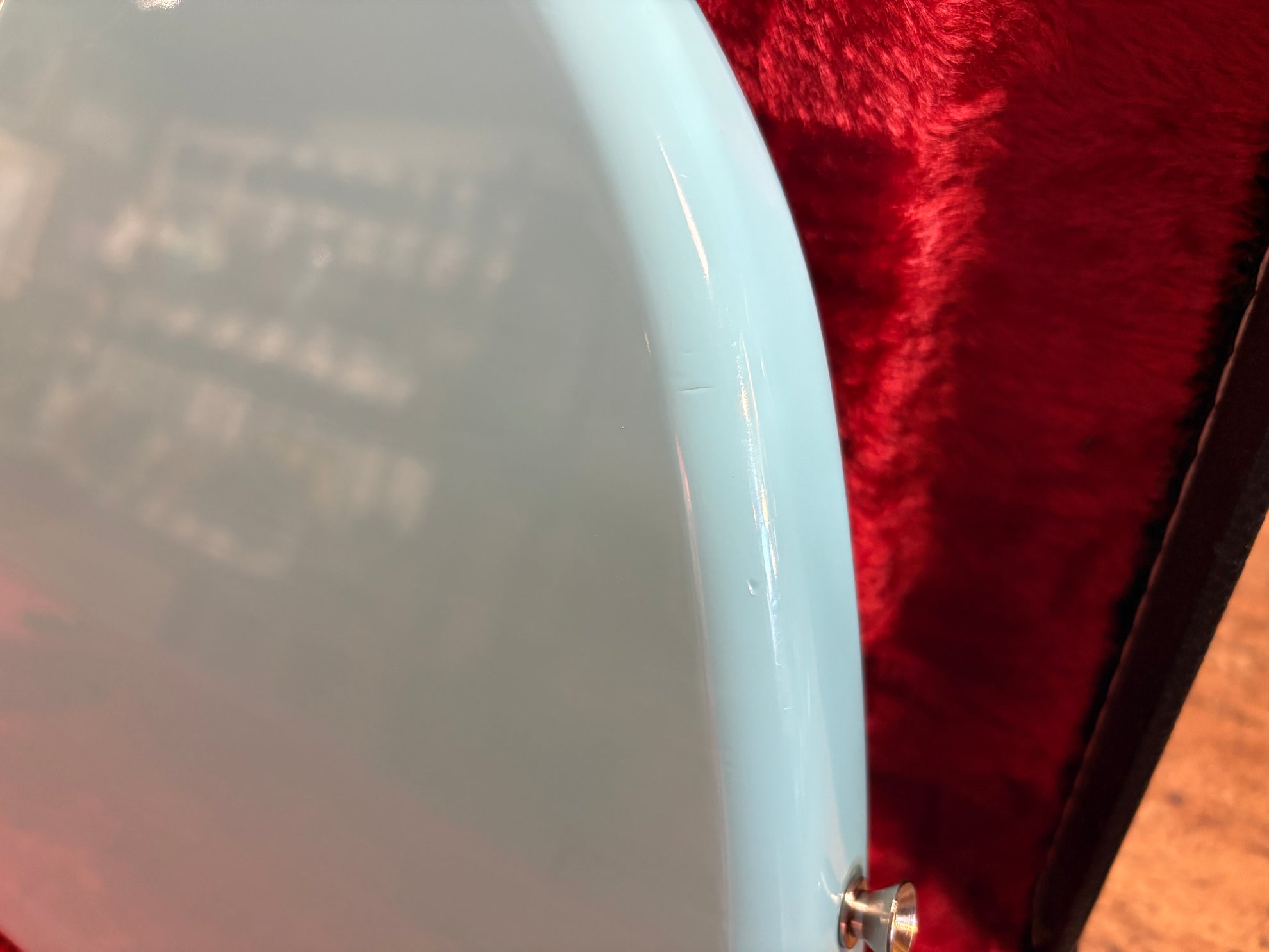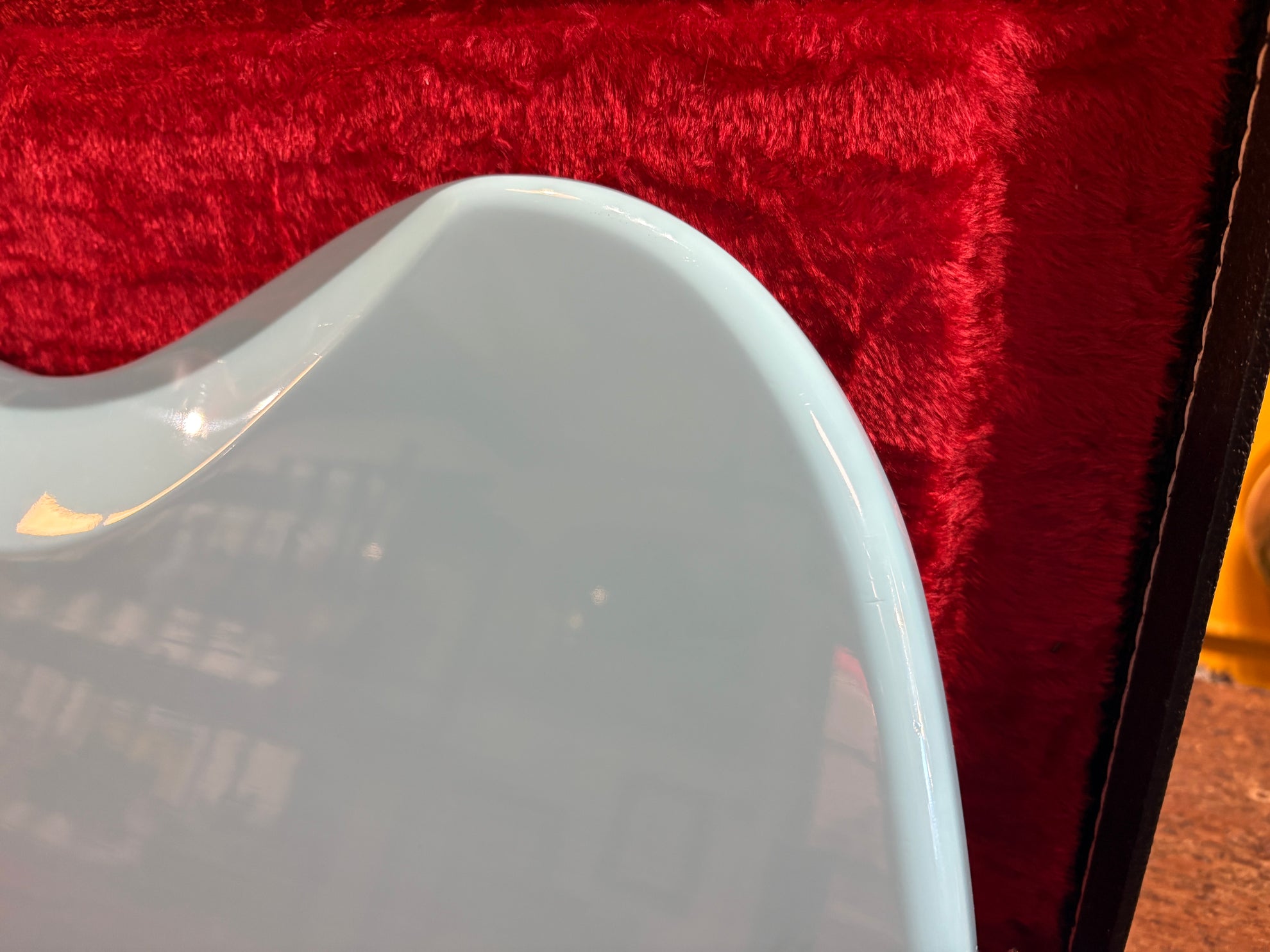 1993 Fender JM-66 Jazzmaster Reissue Daphne Blue, in overall great condition. Looks superb in Daphne Blue with matching headstock! All original. Made in Japan. Includes gig bag.