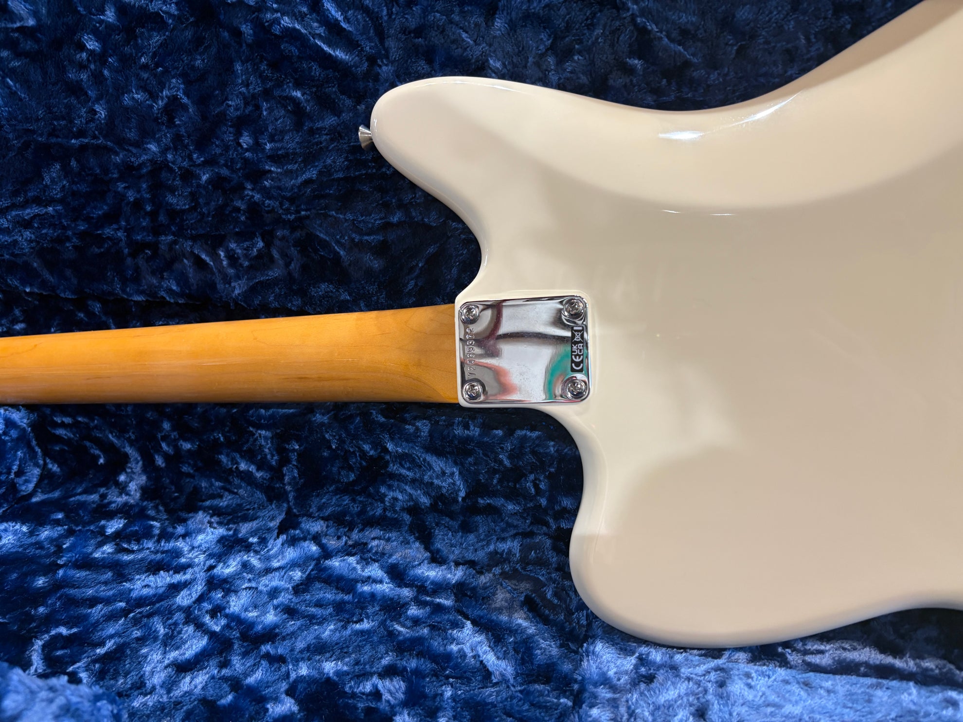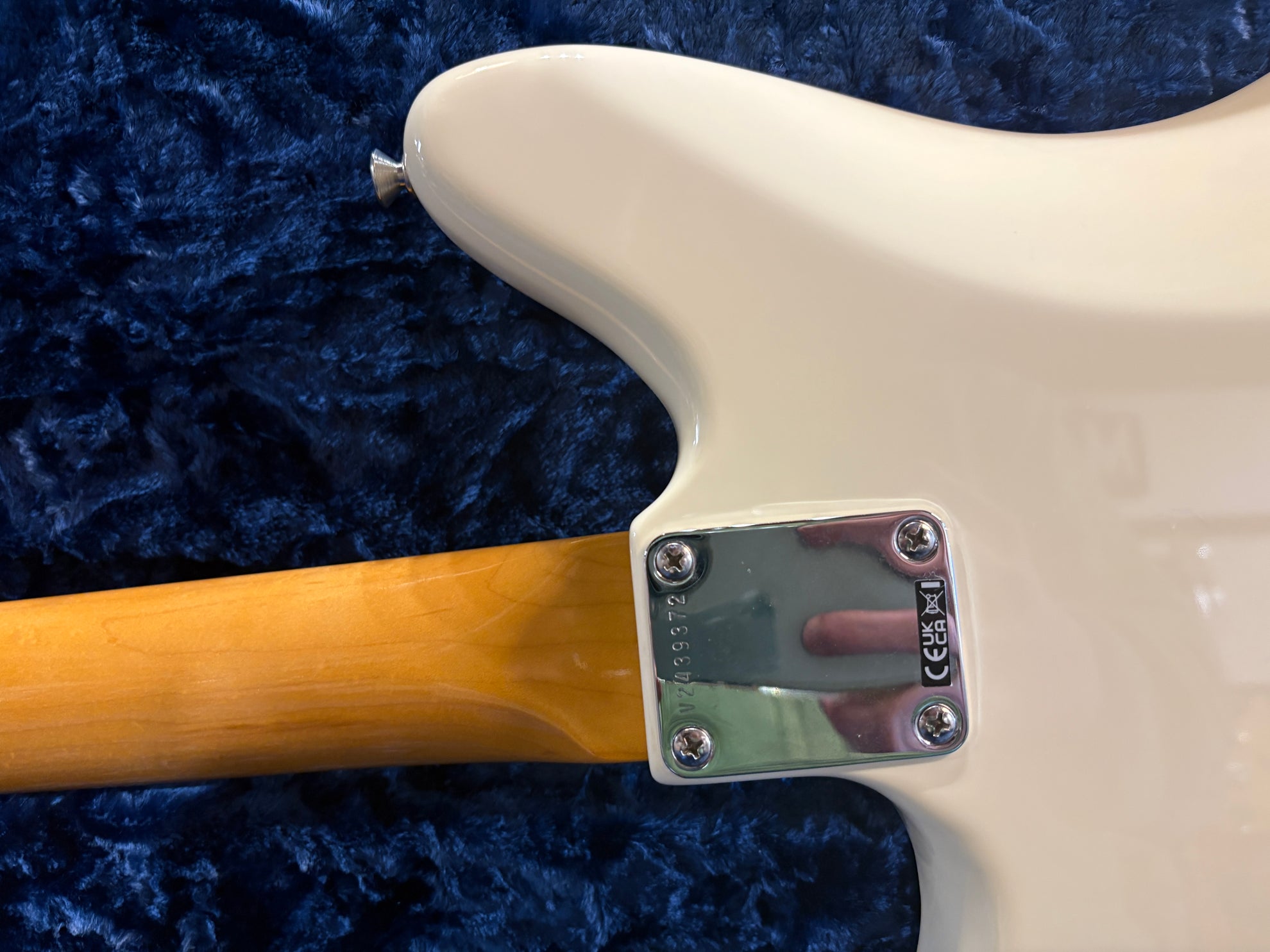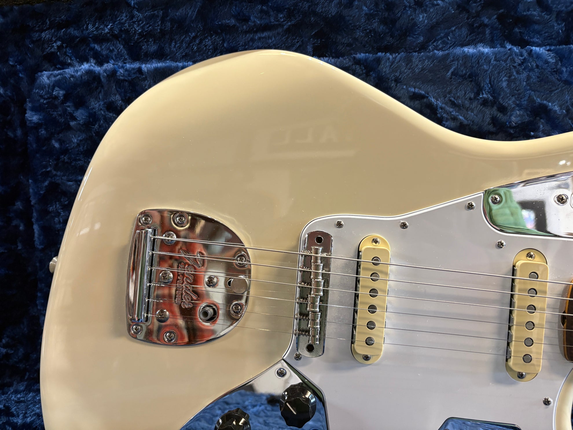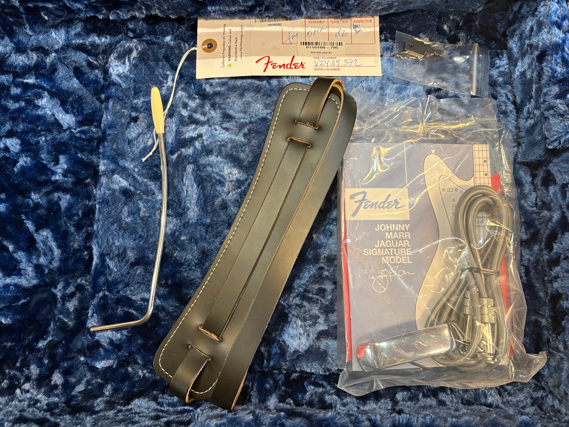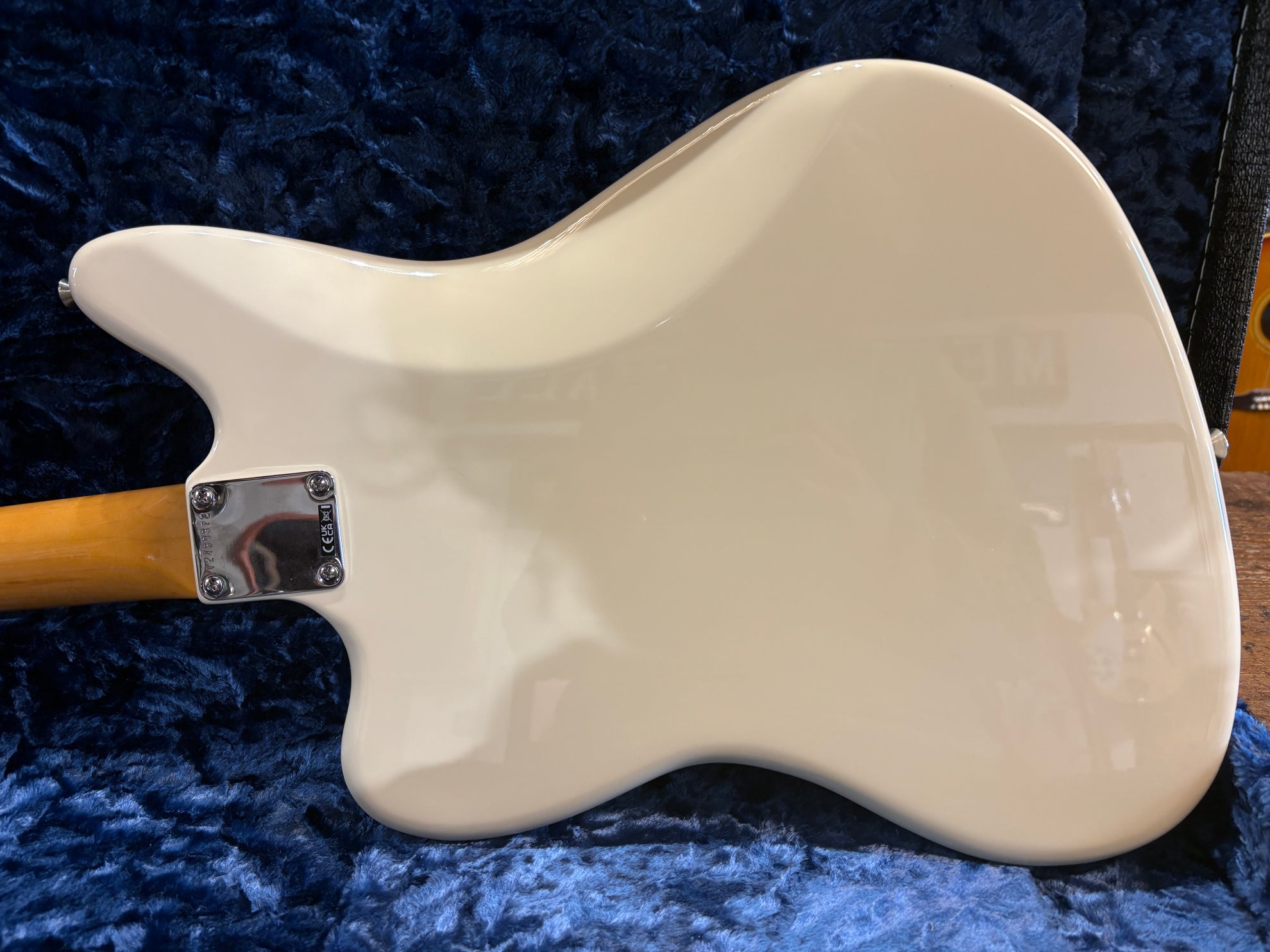2024 Fender Johnny Marr Jaguar Olympic White, in mint condition. A great player, fully set up - a significant price reduction from a brand new model. Includes OHSC and all pictured paraphernalia.