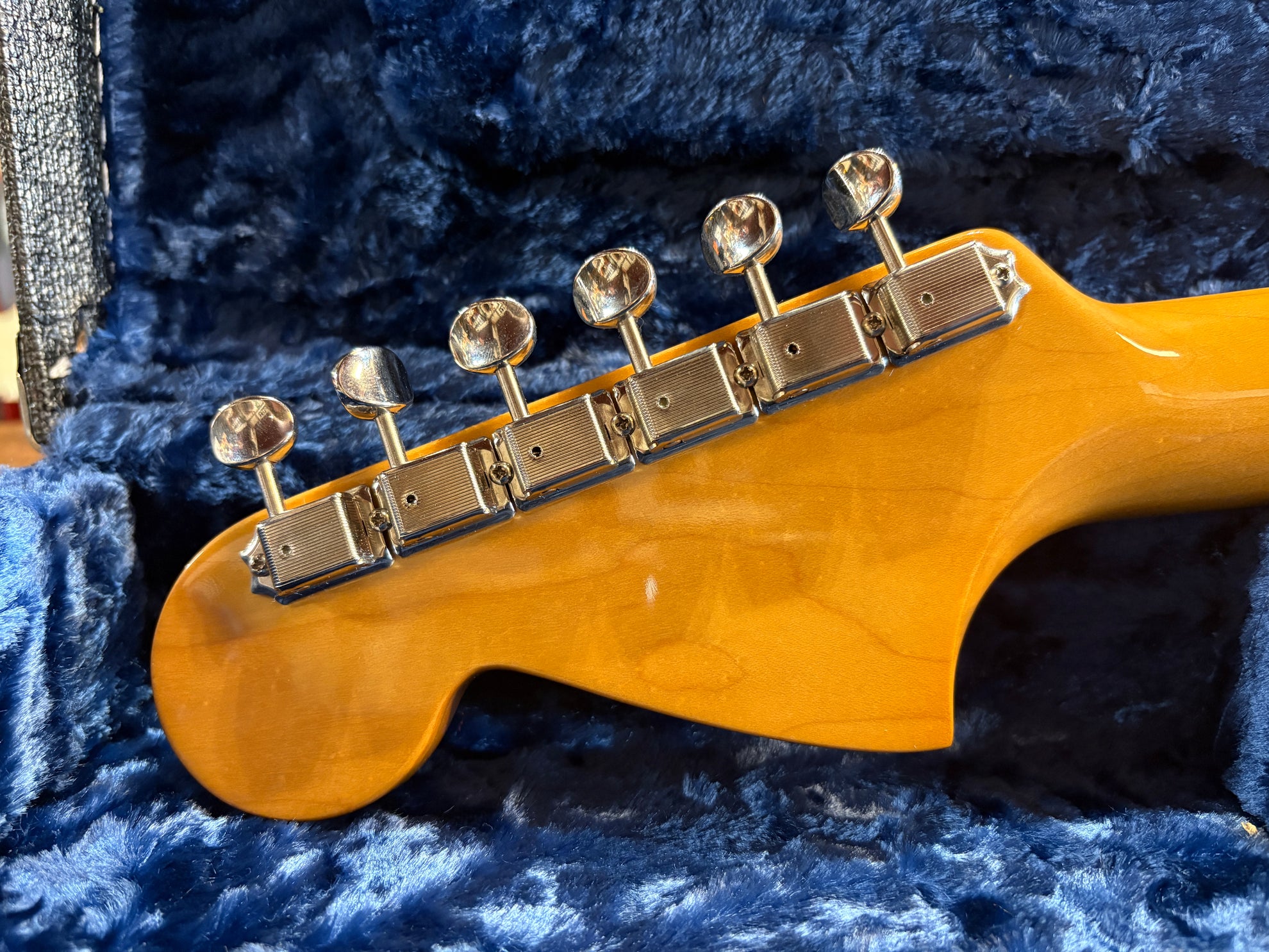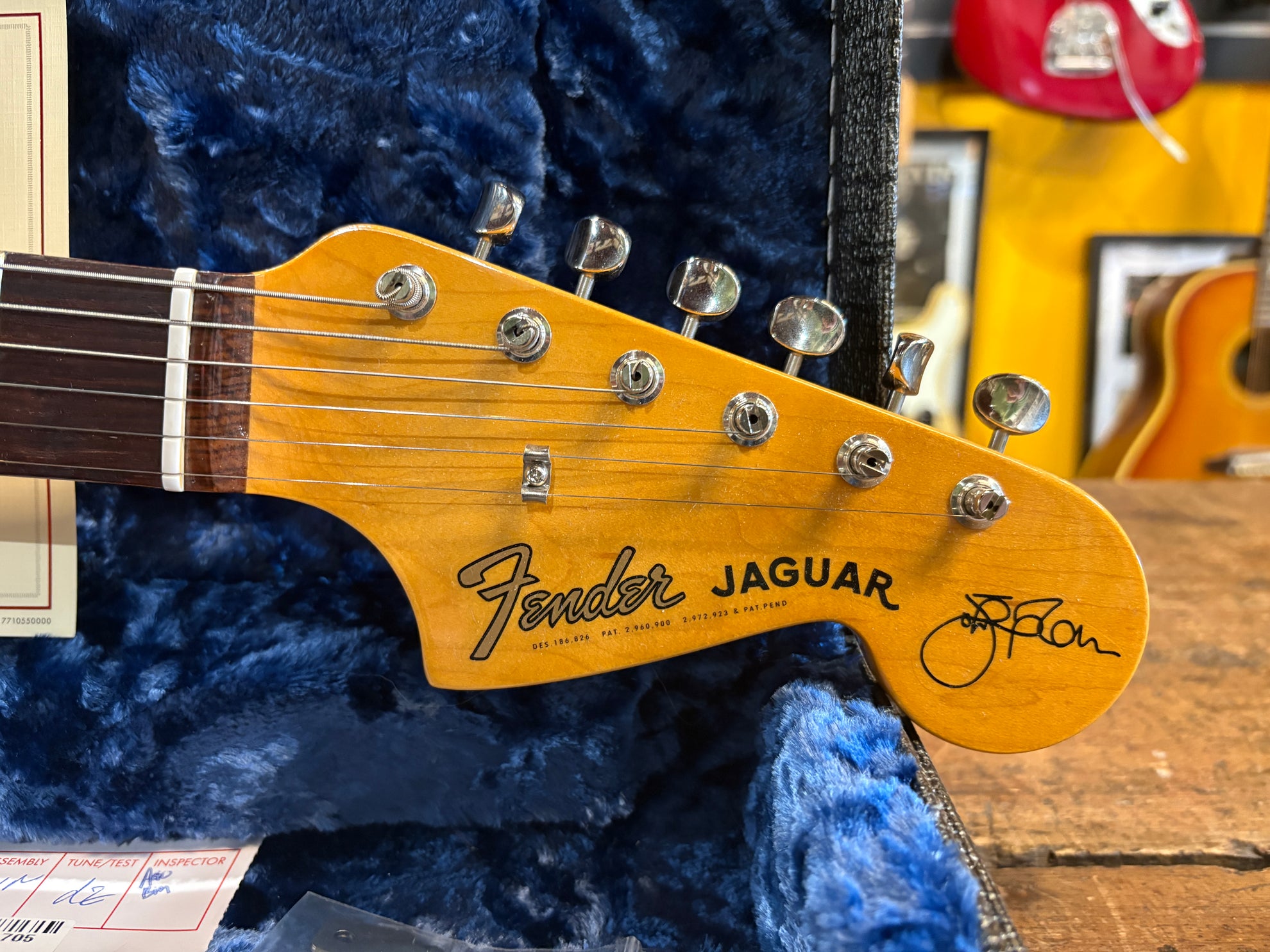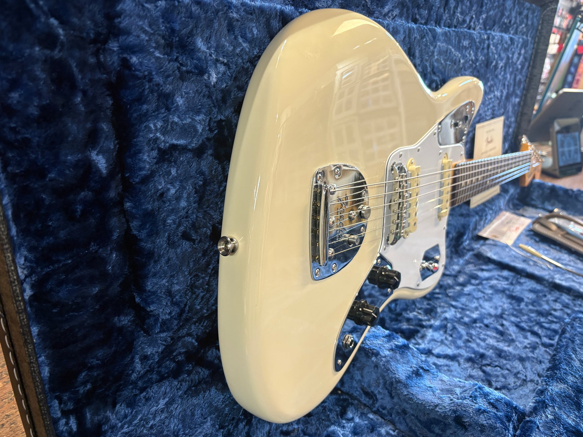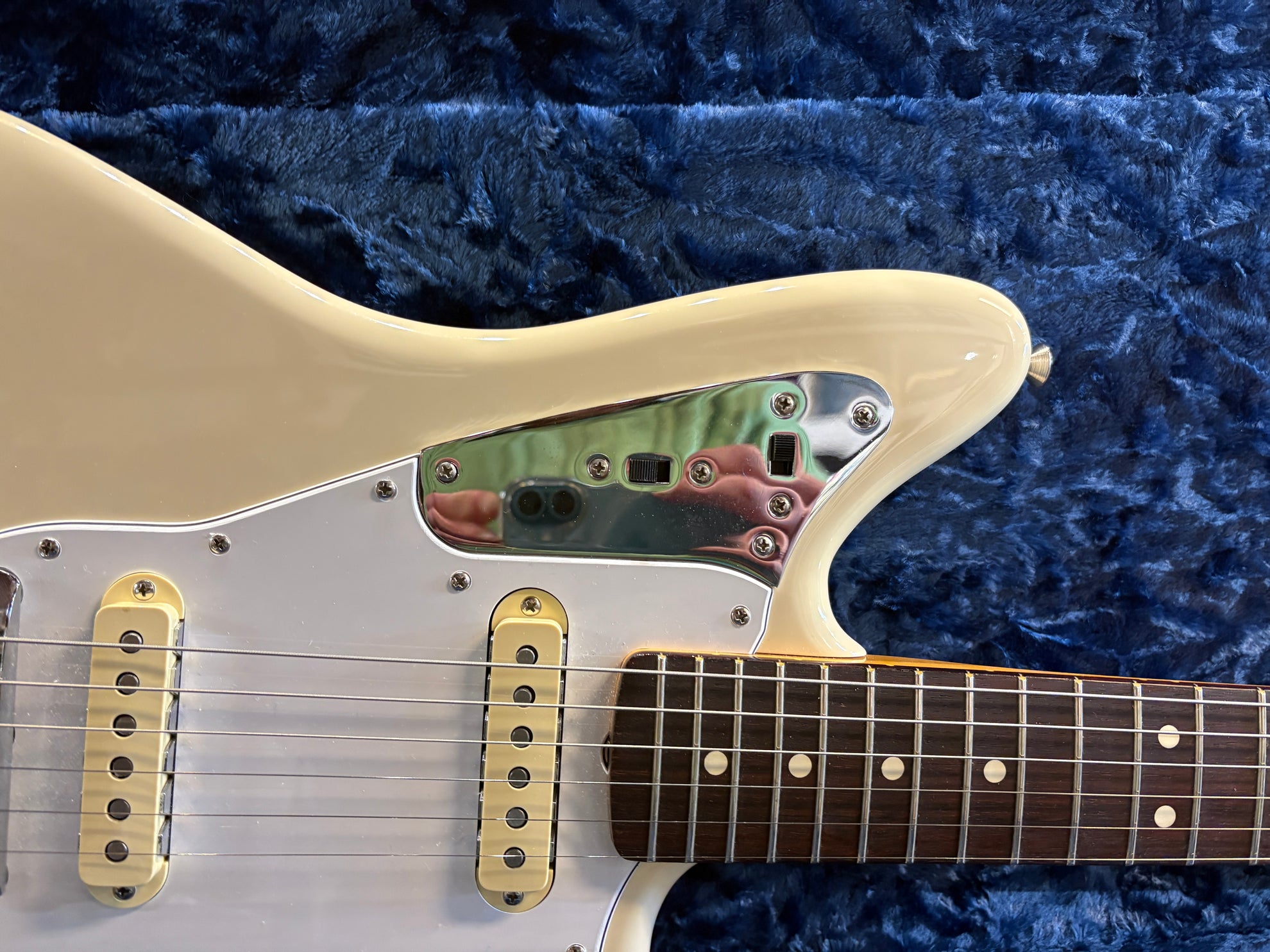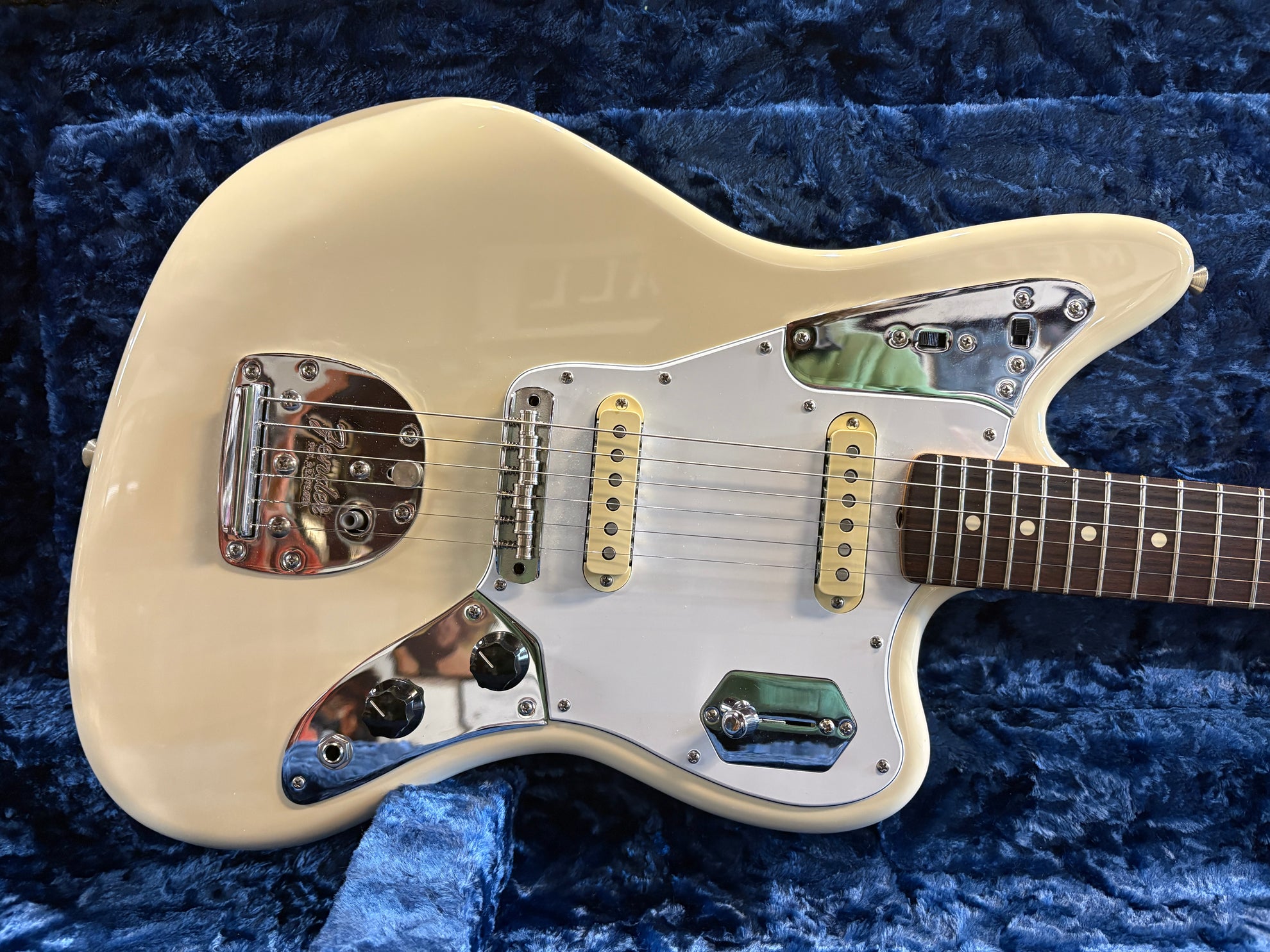 2024 Fender Johnny Marr Jaguar Olympic White, in mint condition. A great player, fully set up - a significant price reduction from a brand new model. Includes OHSC and all pictured paraphernalia.