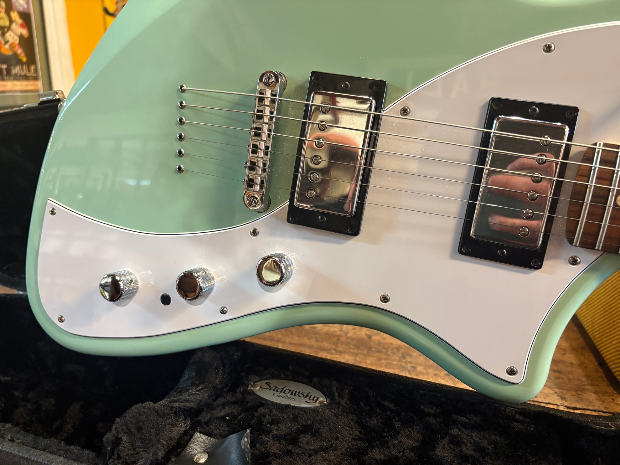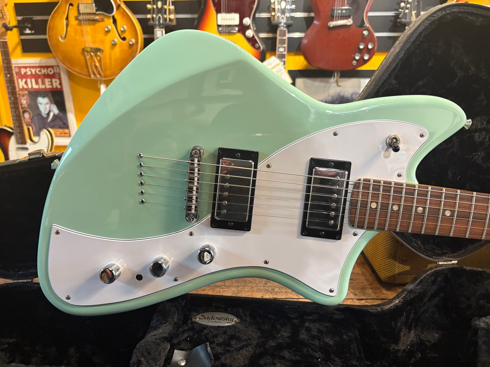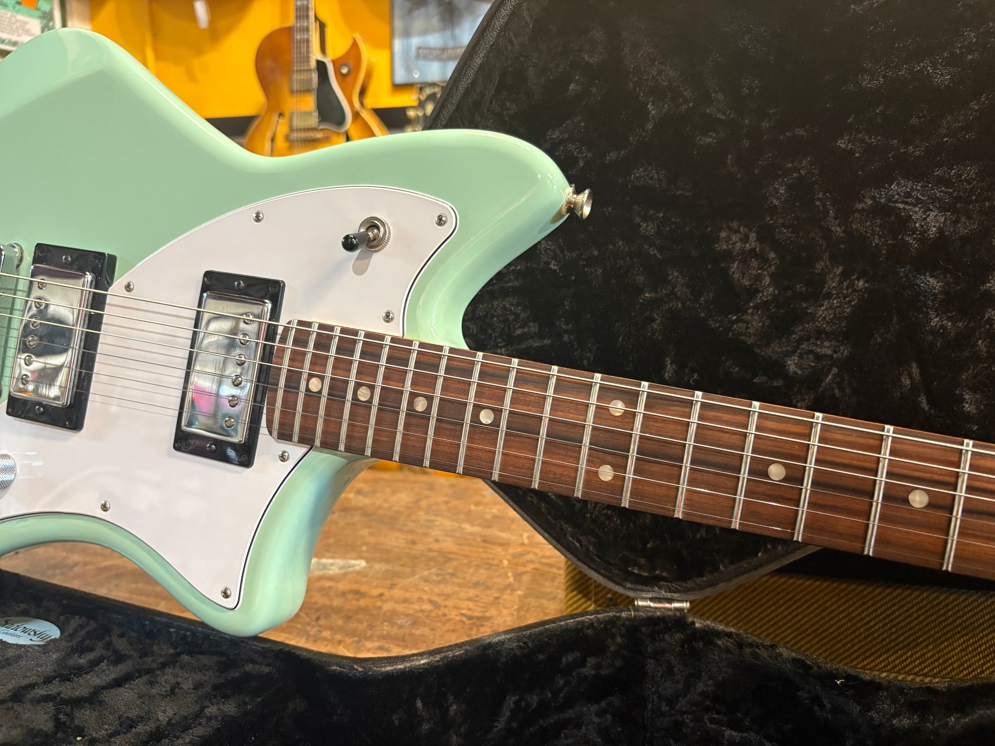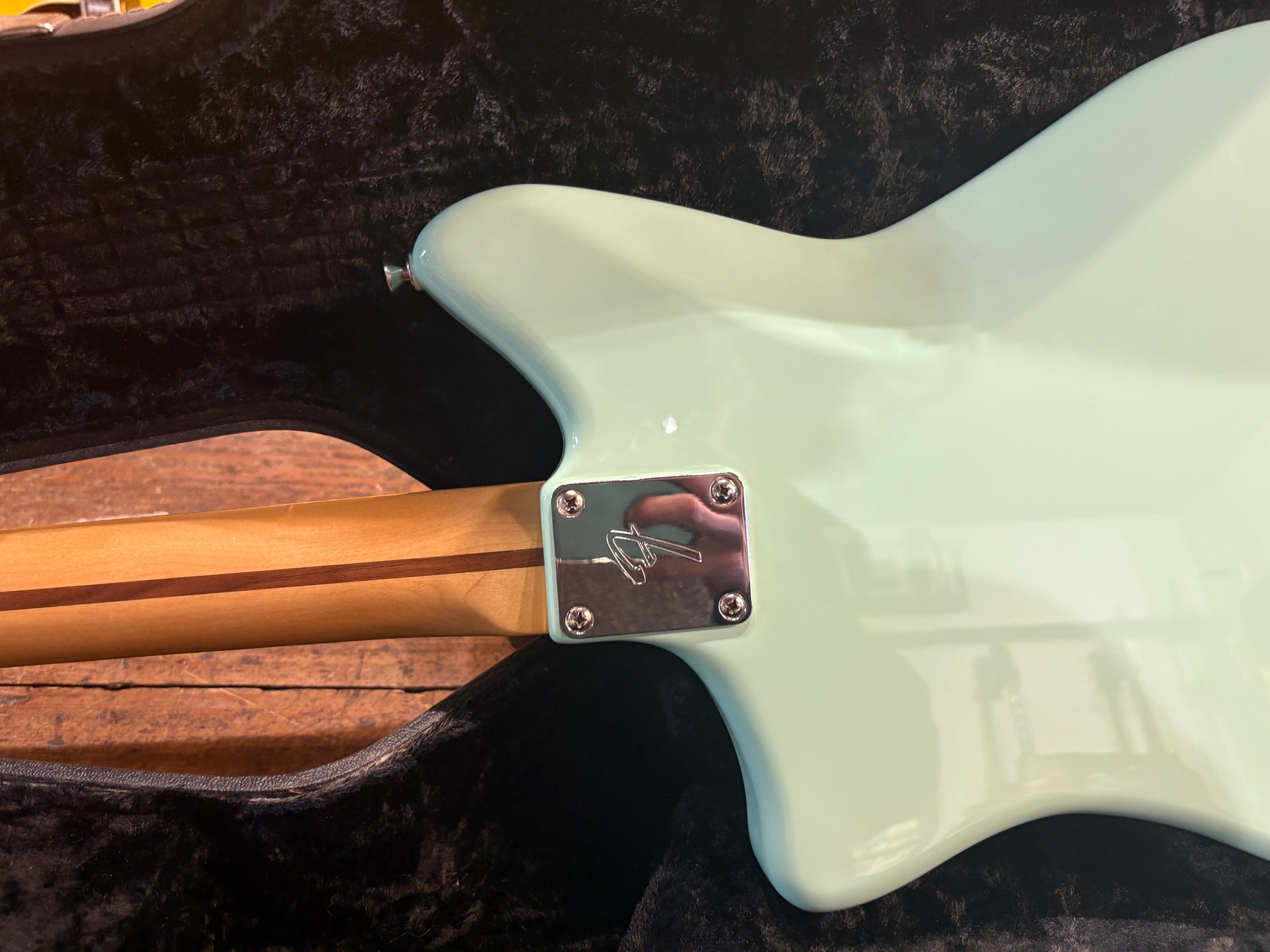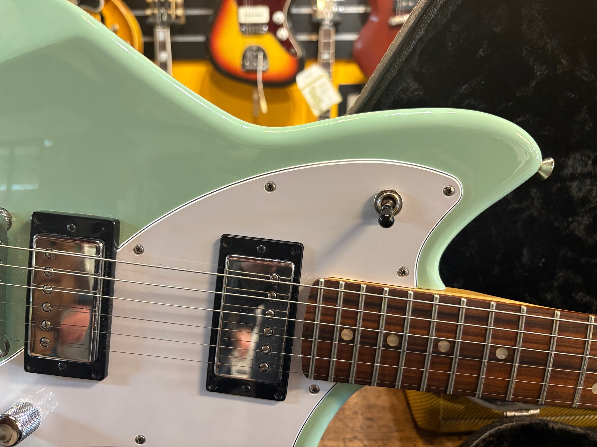 2018 Fender Meteora HH Surf Green, in great used condition. Changed pickguard. Includes gig bag and original pickguard.