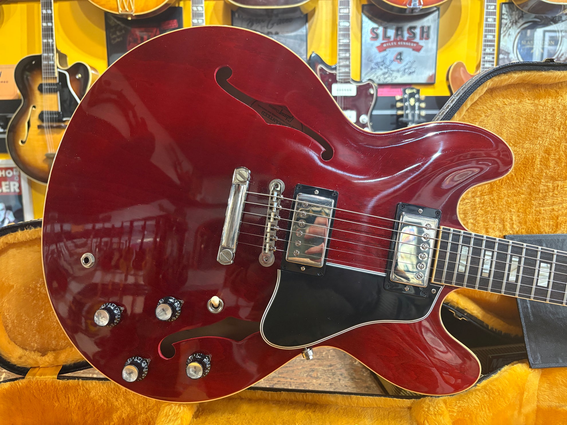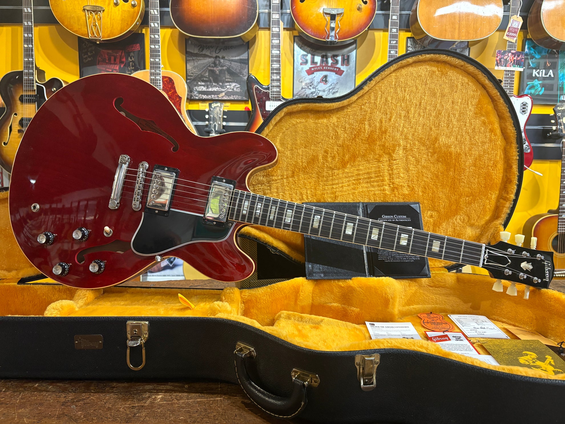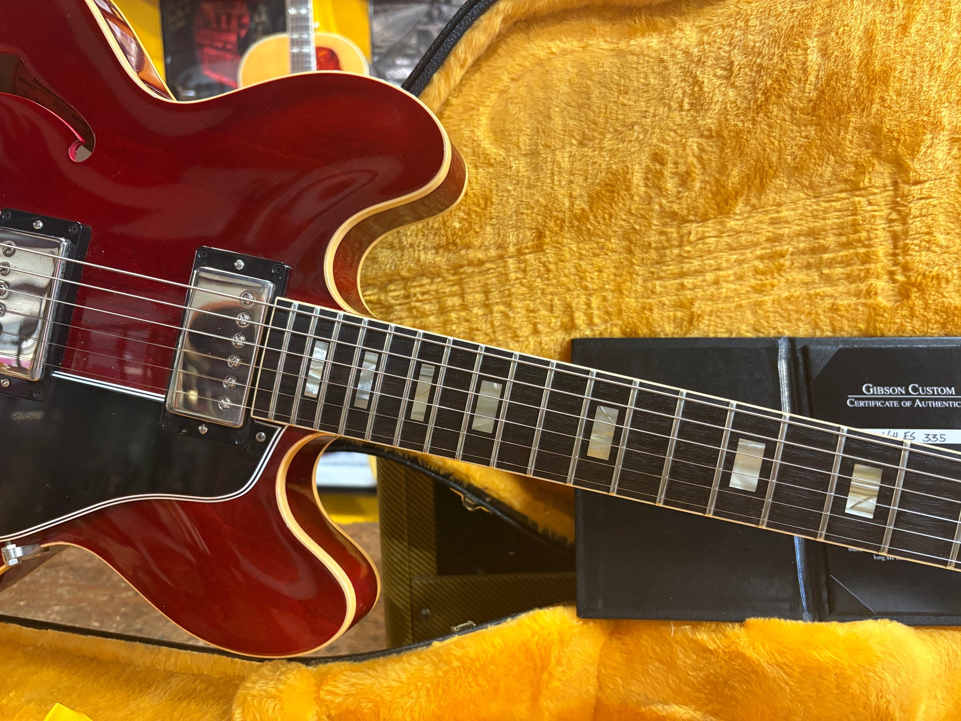 2023 Gibson Custom Shop '64 ES-335 Reissue Cherry, in excellent condition. A stunning recreation of one of the most important years for 335's from the minds at the Gibson Custom Shop. Includes OHSC, cert and pictured paraphernalia.