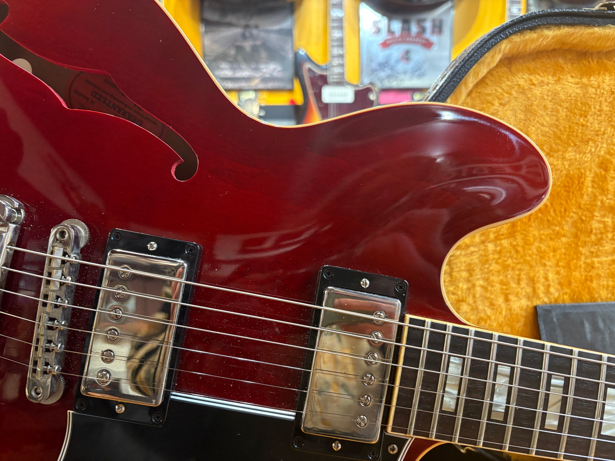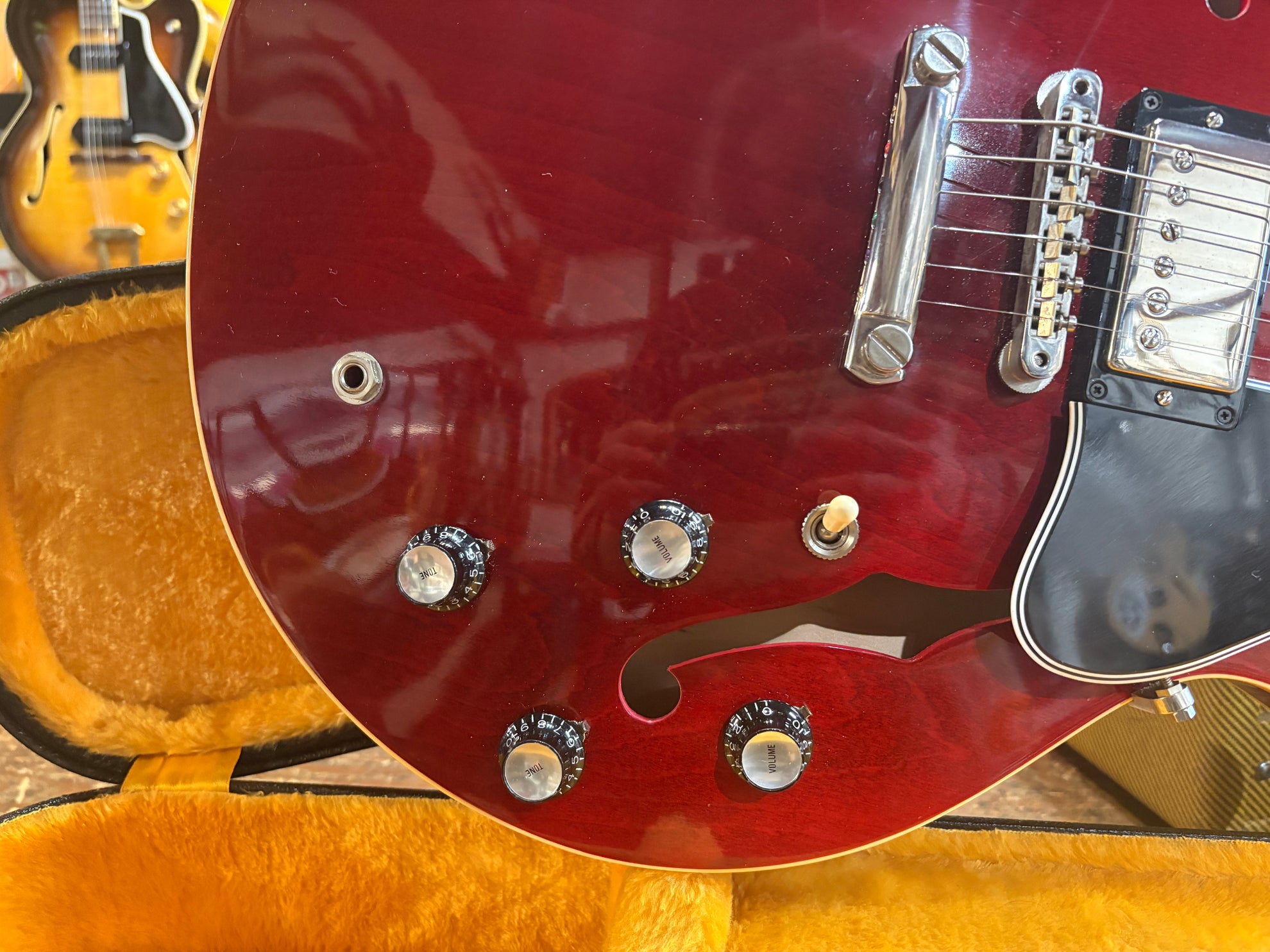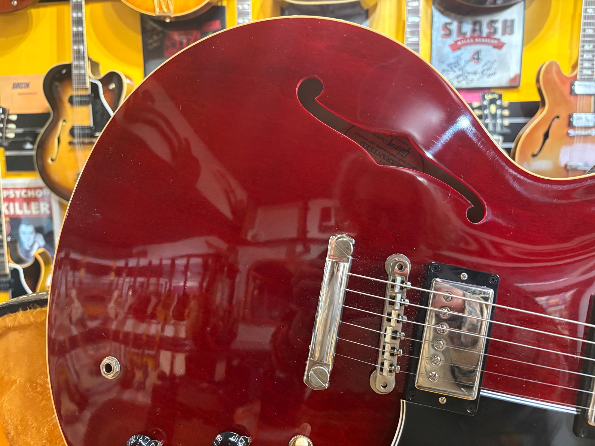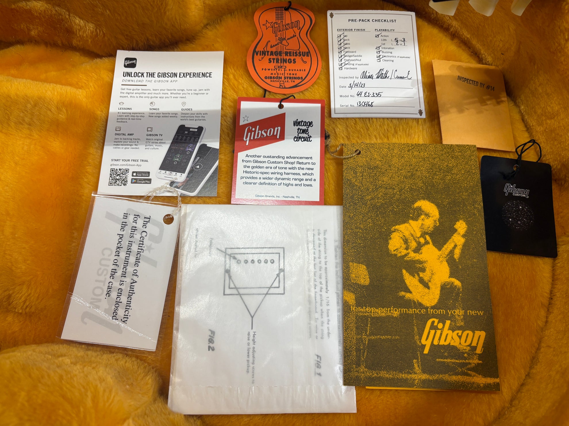 2023 Gibson Custom Shop '64 ES-335 Reissue Cherry, in excellent condition. A stunning recreation of one of the most important years for 335's from the minds at the Gibson Custom Shop. Includes OHSC, cert and pictured paraphernalia.