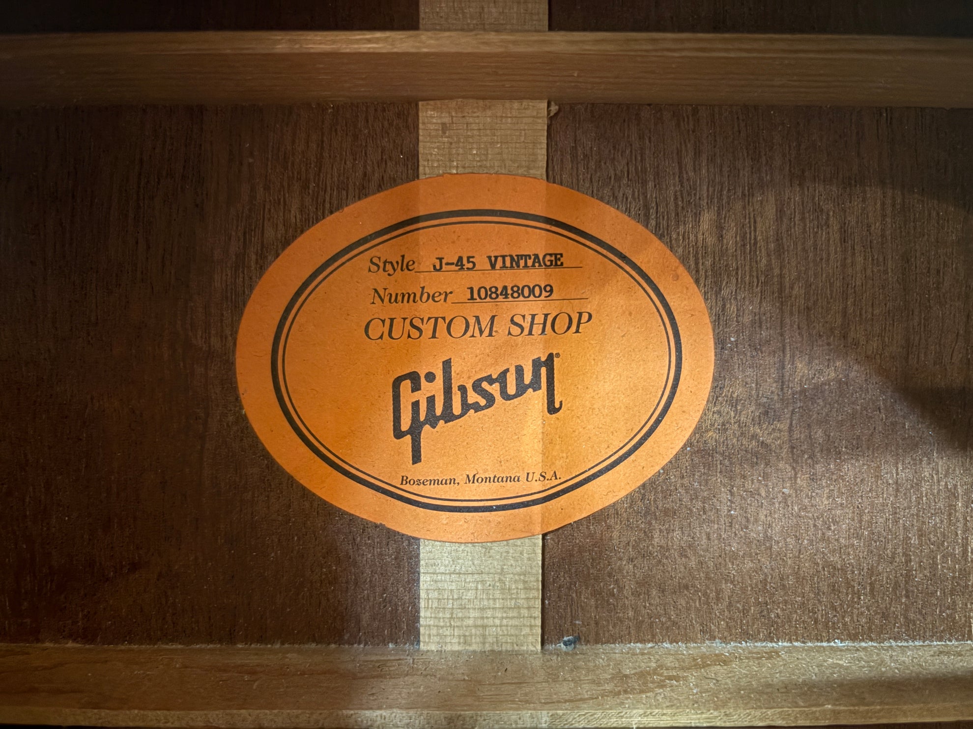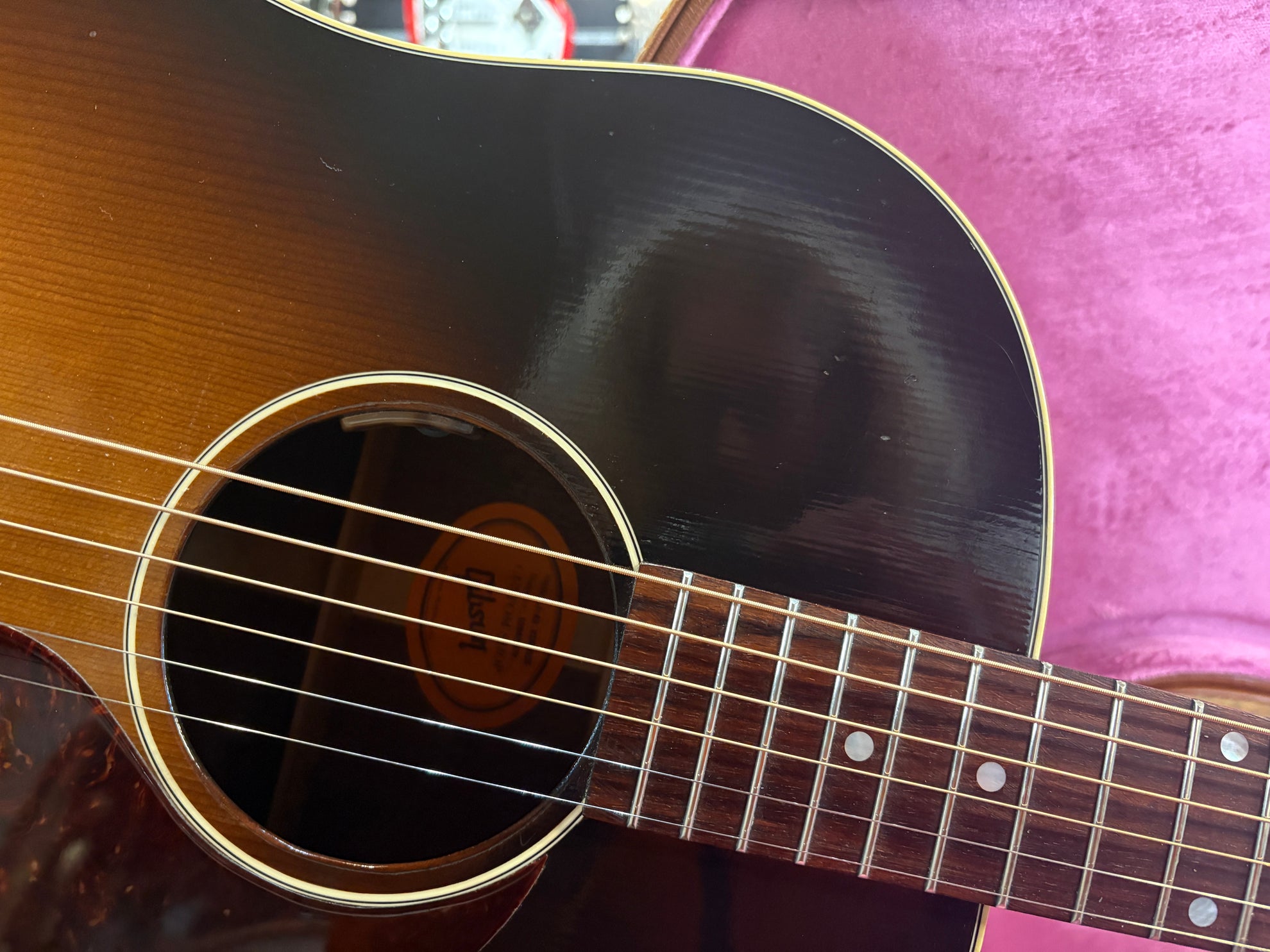 2018 Gibson Custom Shop Historic 1942 Banner J-45 Sunburst, in very good condition. A superb homage to the golden age of Gibson acoustics. All original aside from an added LR Baggs pickup and one side crack repair, pictured. Includes OHSC.