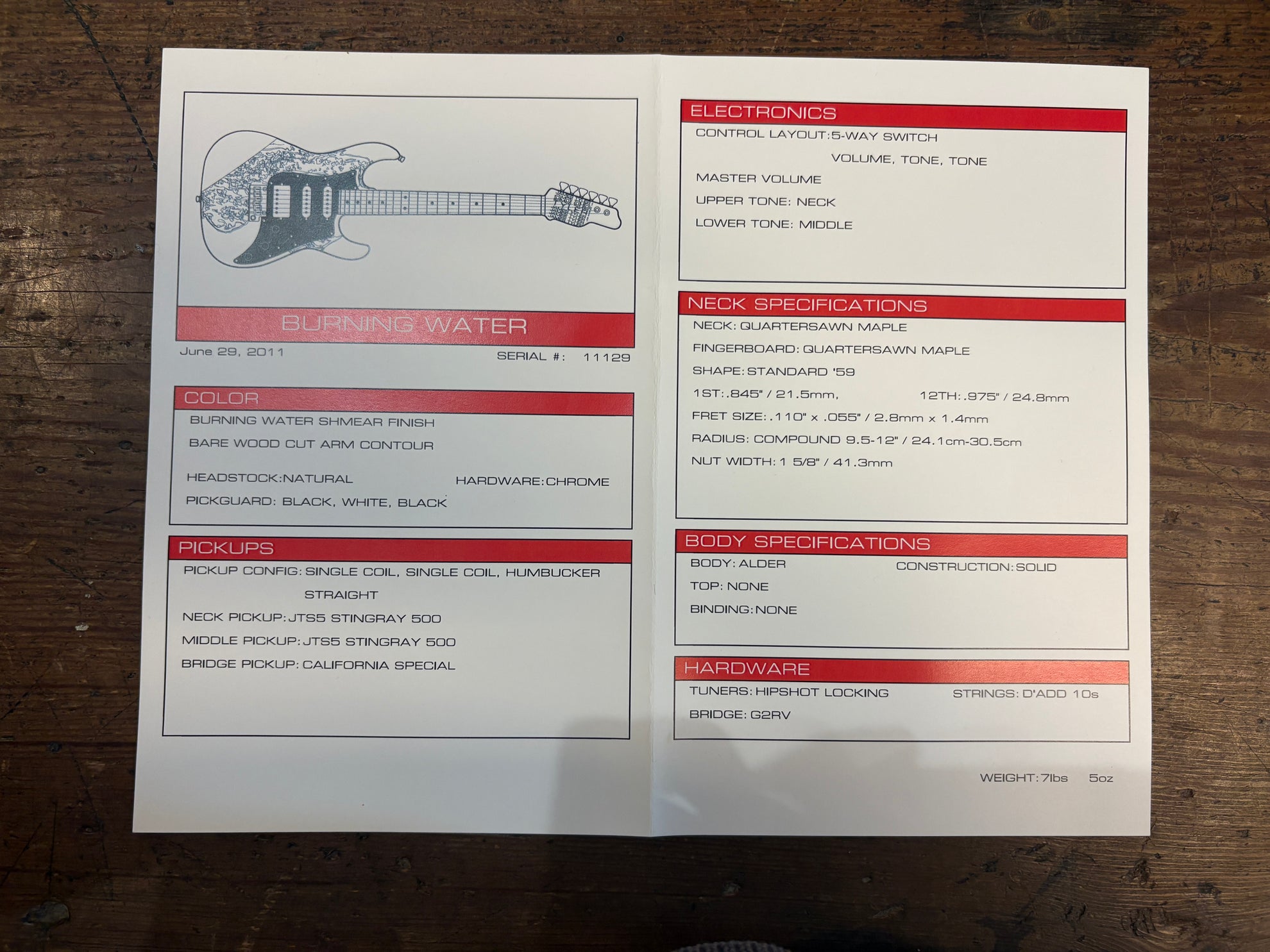 2011 James Tyler Burning Water, in very good used condition - some playwear, pictured. An absolutely stunning machine. All original. Includes OHSC.