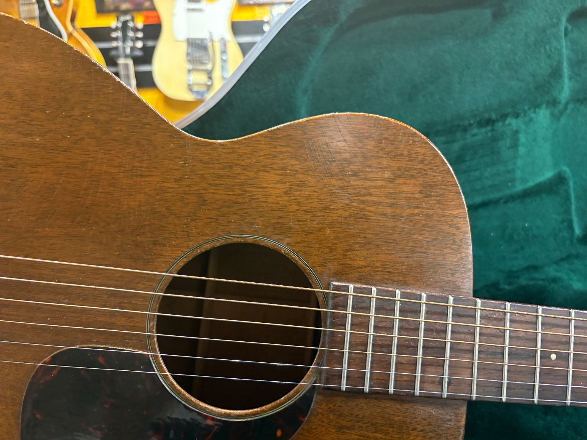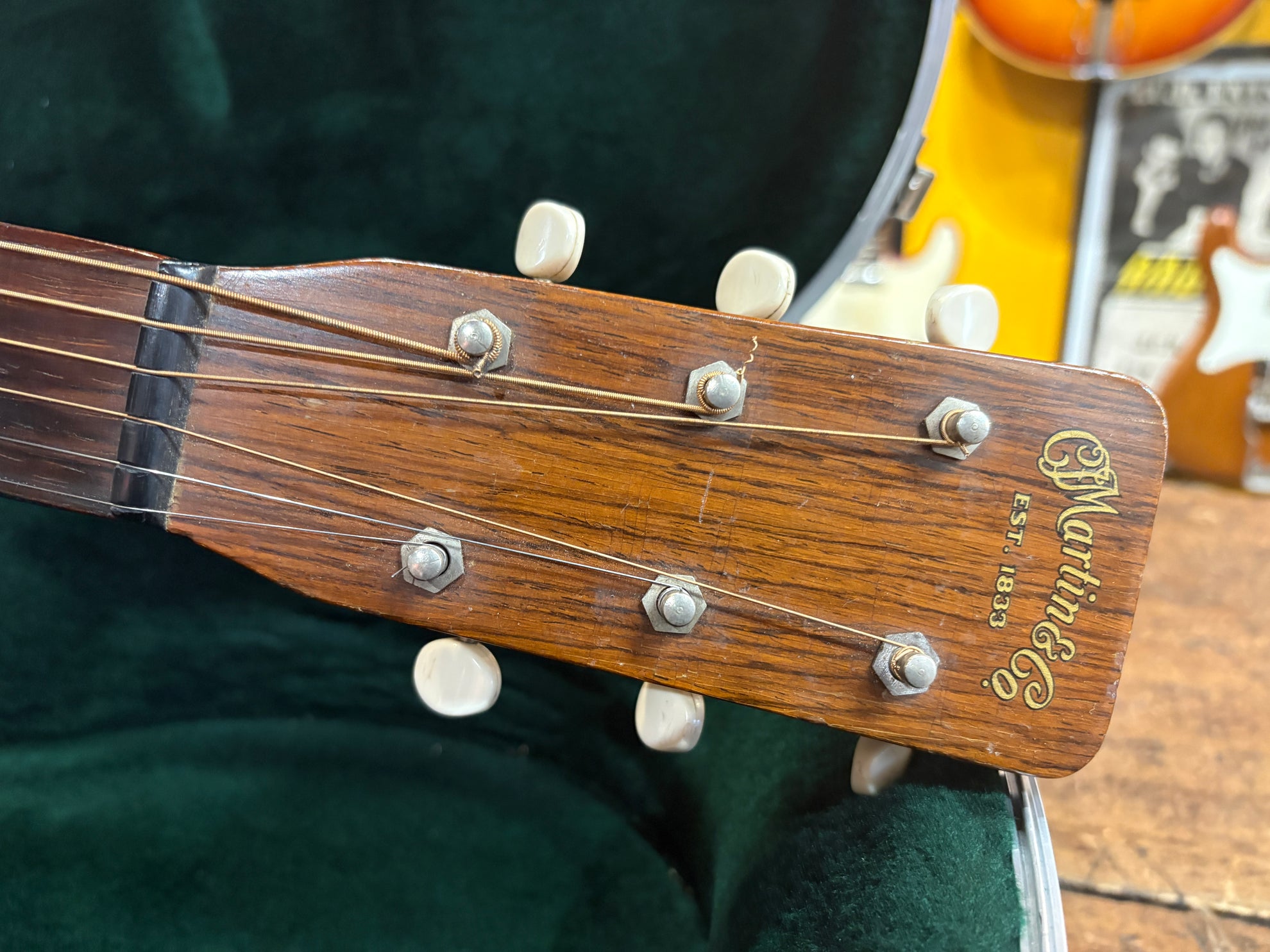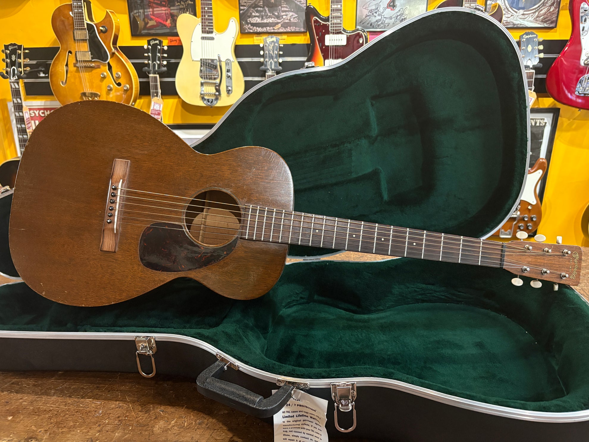 1959 Martin 0-15 Natural, in very good vintage condition. An absolutely stunning guitar, sounds incredible. All original aside from some light overspray on the neck, changed bridge pins and an expertly crafted bridge made by Andy Keeling and professional neck reset. Includes a NOHSC, not pictured.
