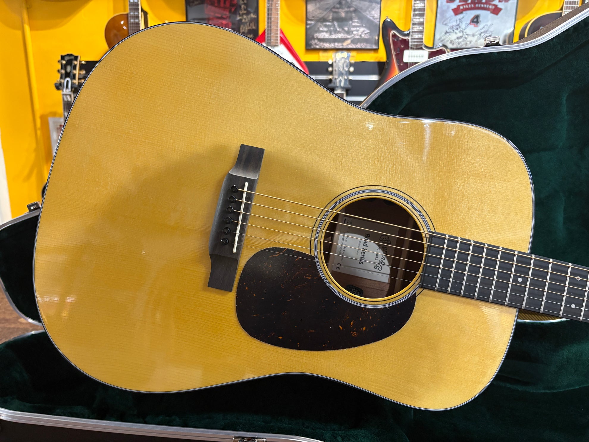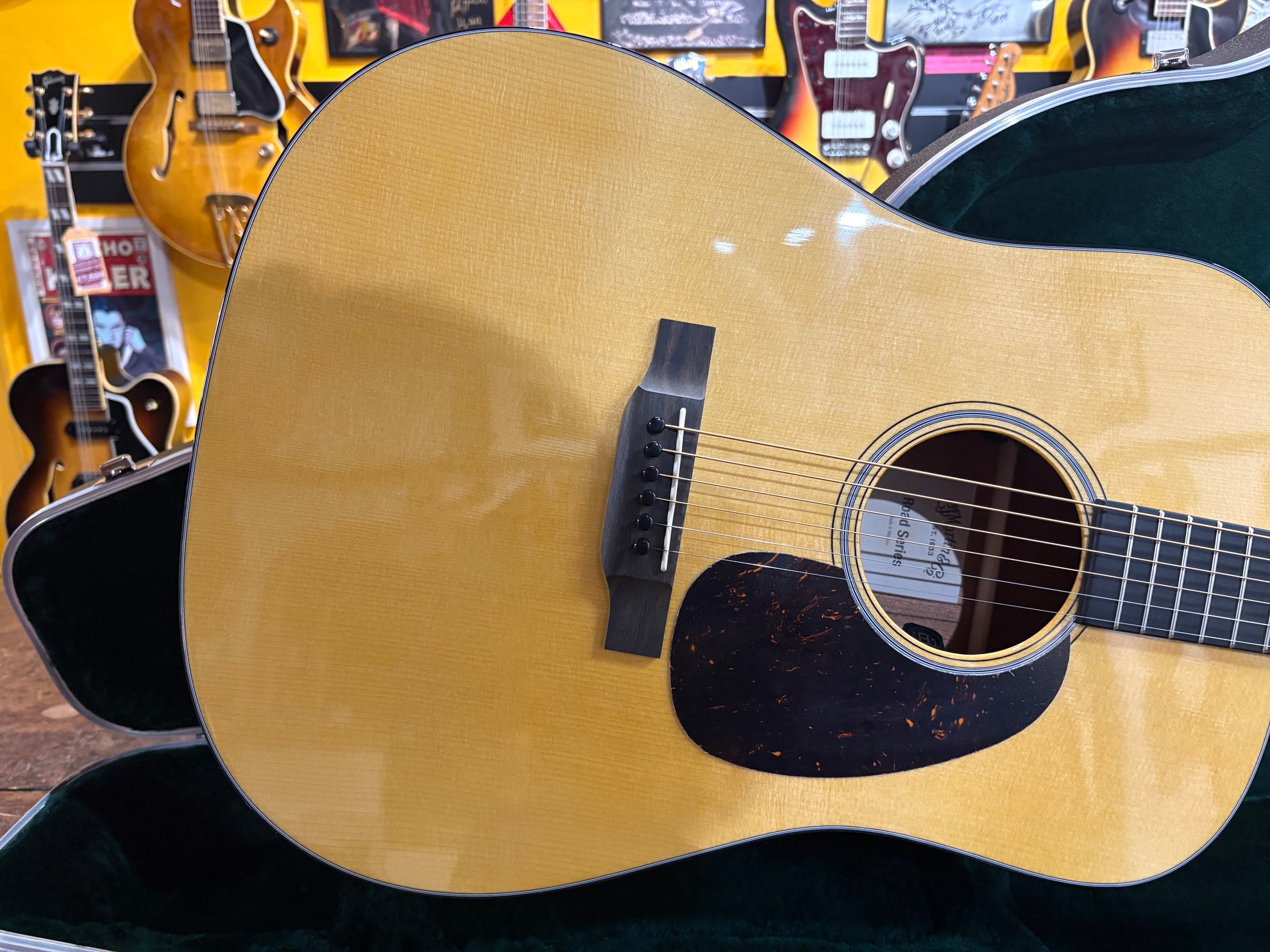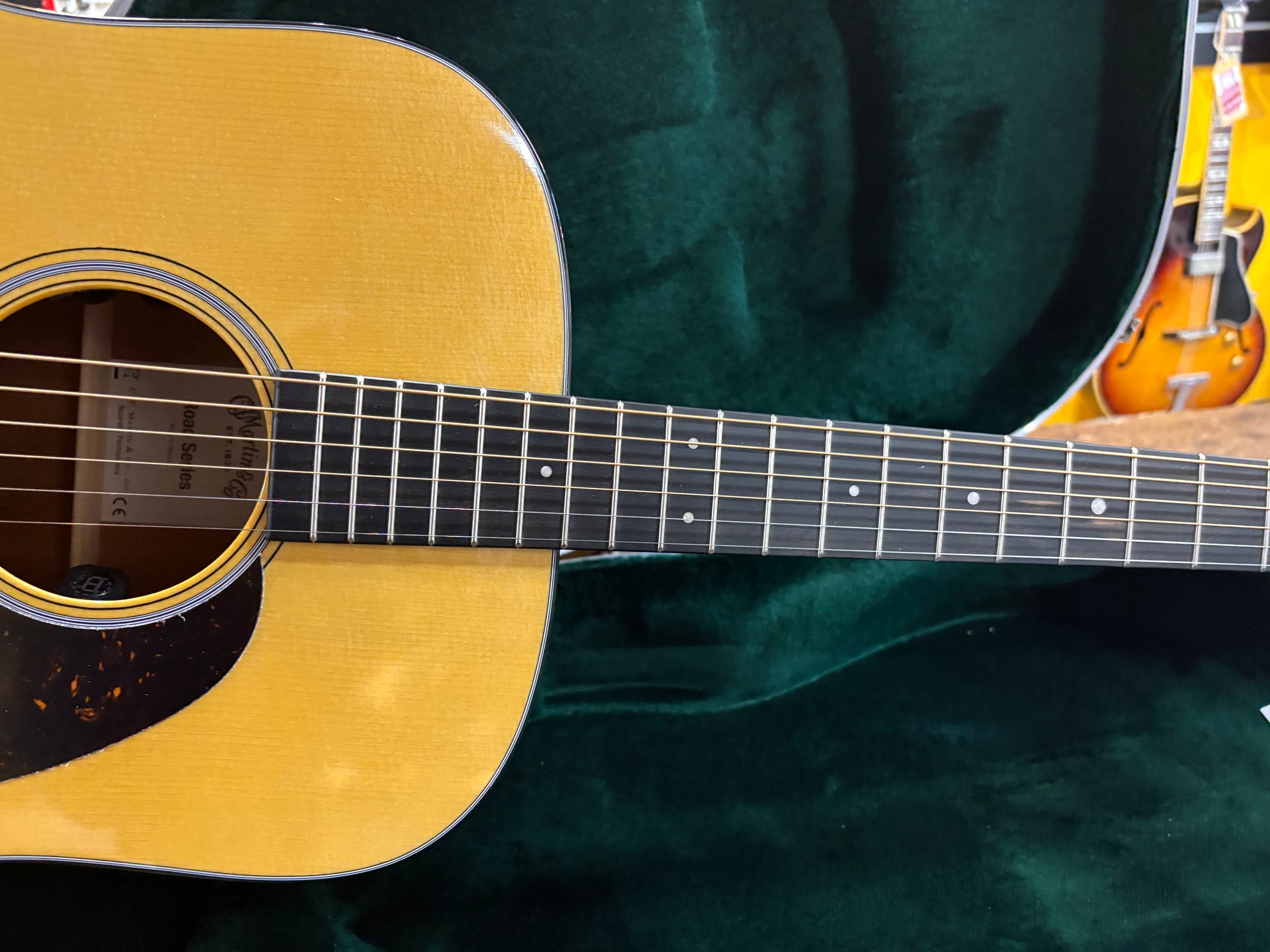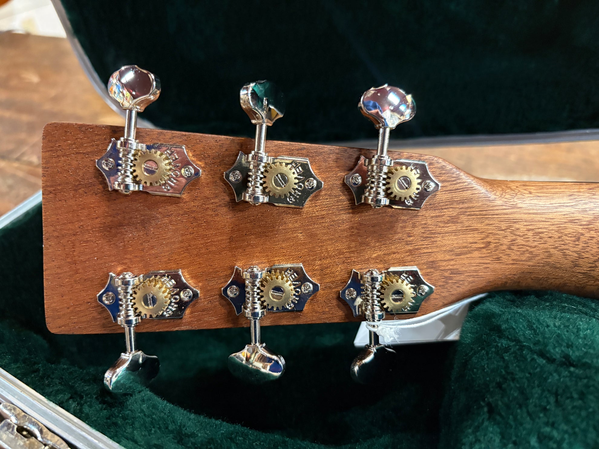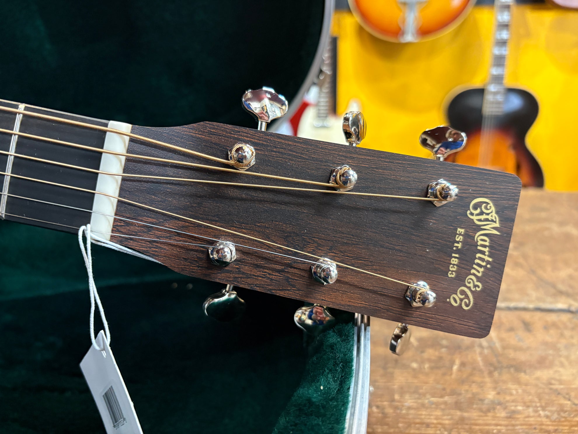 "The Martin D-12E Retro delivers classic style, powerful tone, and proven performance—all wrapped in a full-body gloss finish that adds rich visual depth to its solid spruce top and solid sapele back and sides. The Dreadnought body produces bold, projective tone with strong bass, while scalloped X-bracing adds clarity and responsiveness. A Performing Artist neck with high-performance taper ensures smooth, modern playability across the fingerboard. Vintage-inspired touches like old-style dot inlays, a multi-stripe rosette, and nickel open gear tuners with butterbean knobs nod to Martin’s Style 18 roots. With versatile E1 electronics, a built-in tuner, and a softshell case, this Road Series model is made to go the distance."