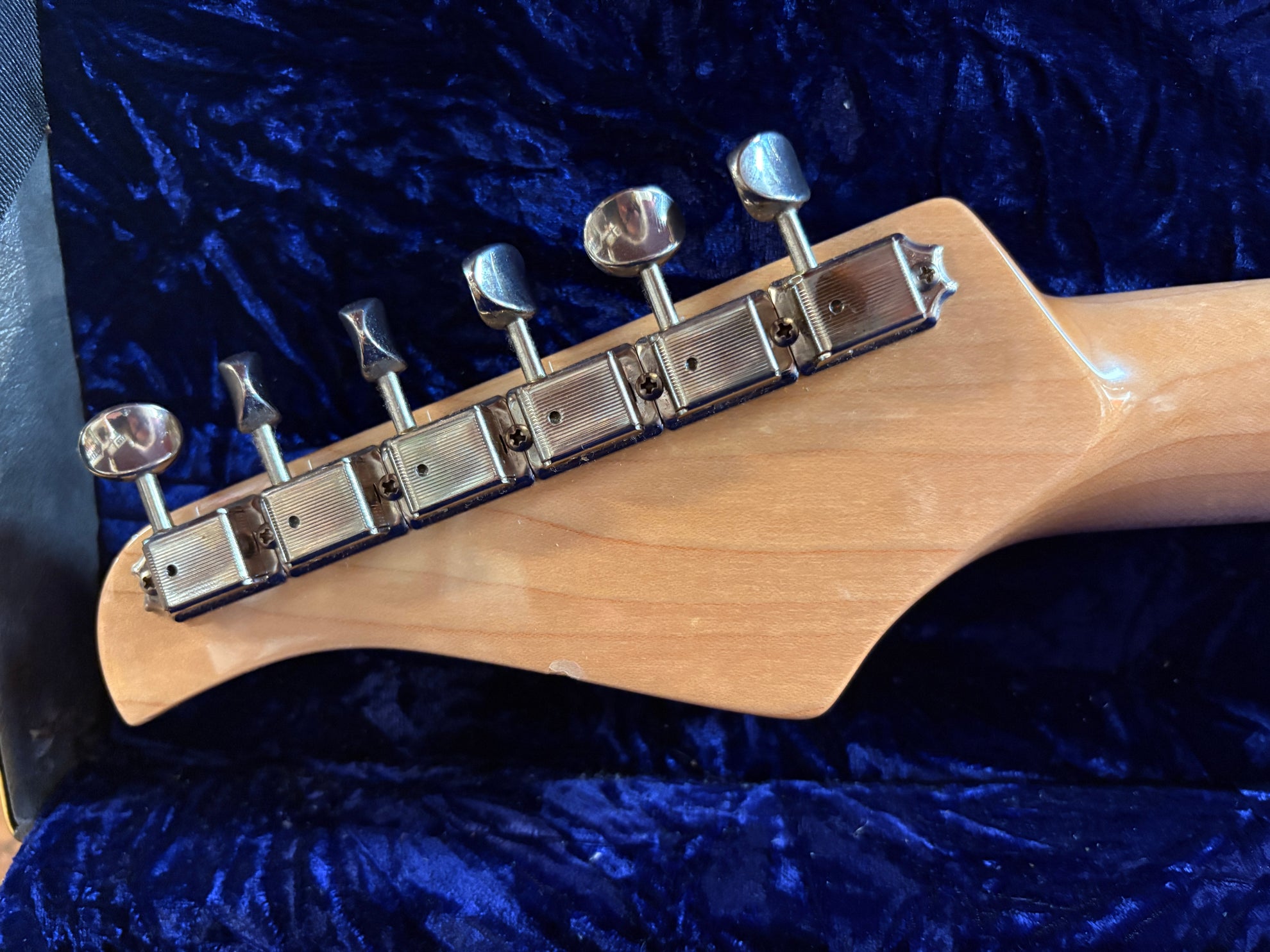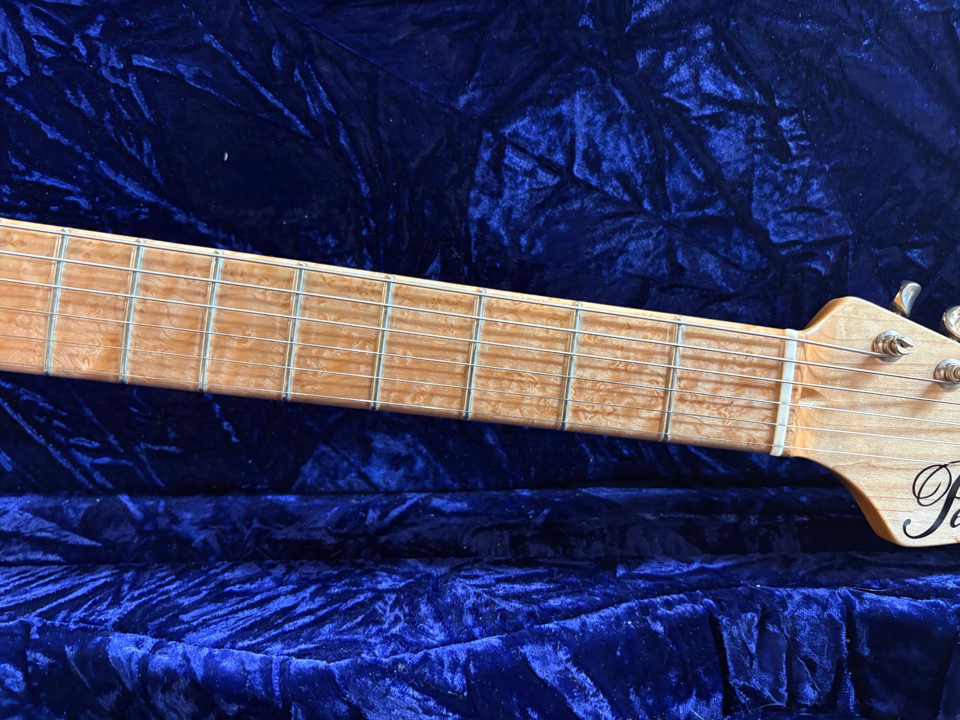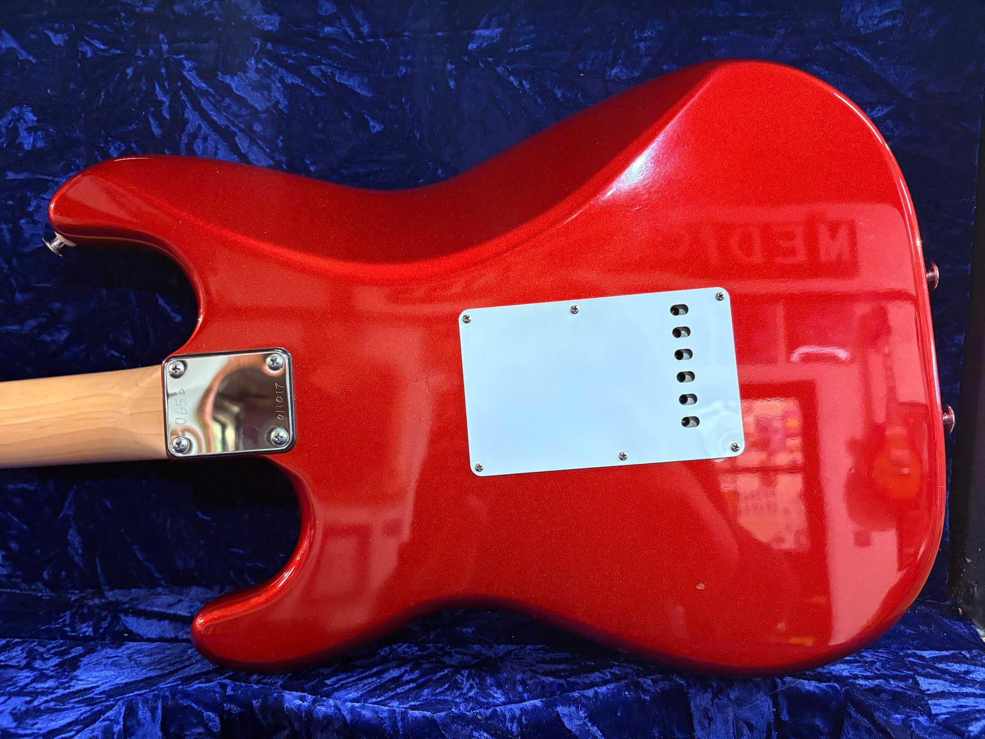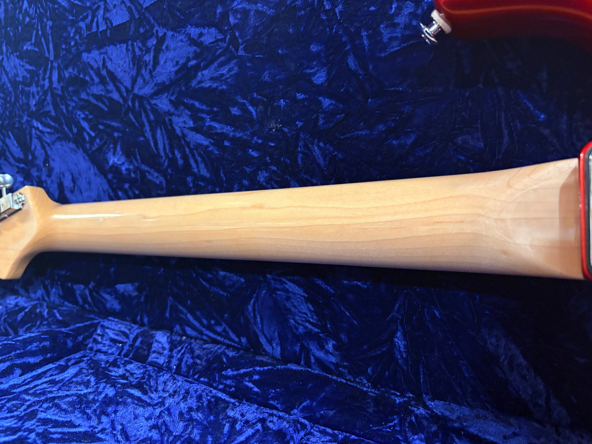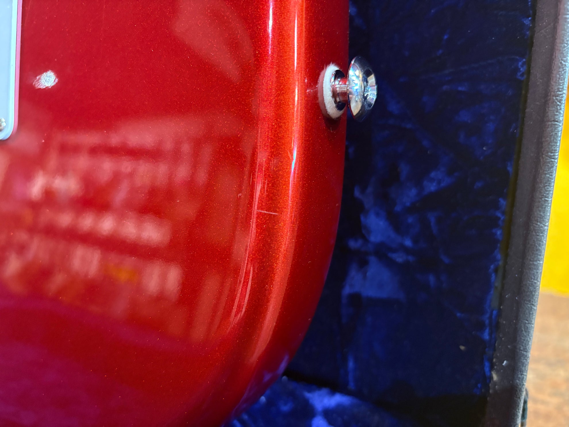 2017 Pensa Custom MK-80 Candy Apple Red, in very good condition - some light wear, pictured. What a stunning machine! The Birdseye Maple on the neck is absolutely divine. Professional filled mark on the back of the neck. All original. Includes OHSC.