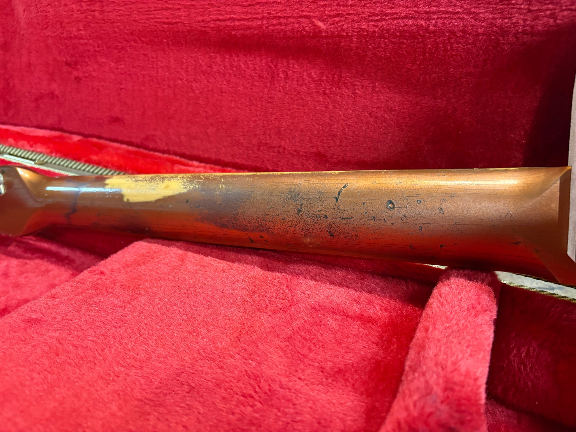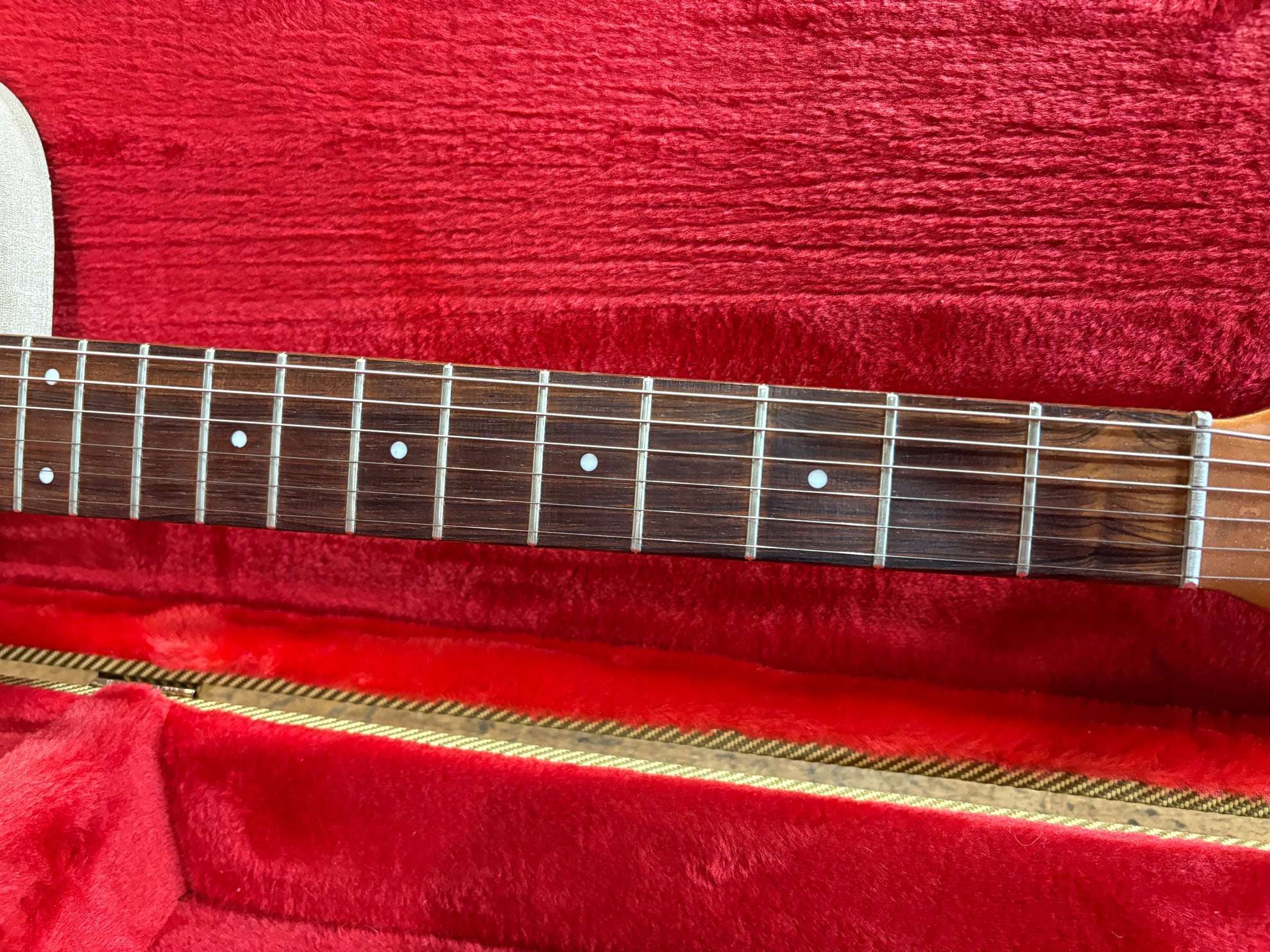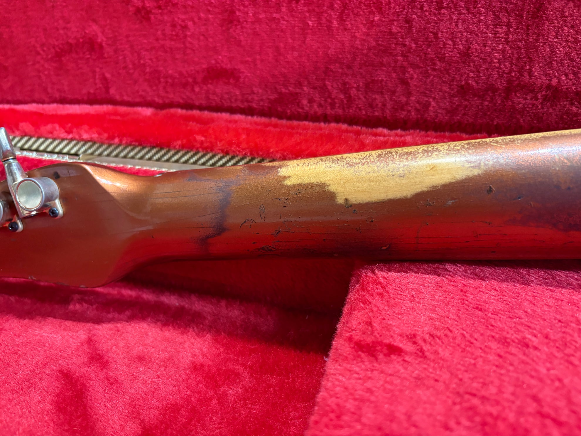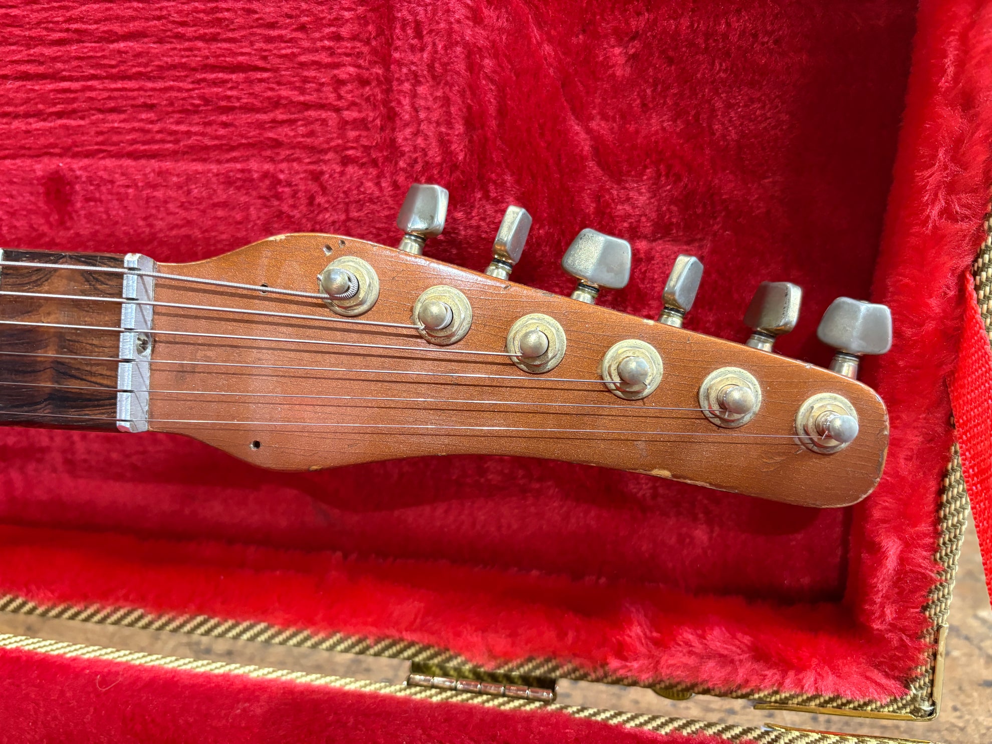 c. 1960 Silvertone U-1 Metallic Copper, in overall very good vintage condition. All original aside from changed tuners and a re-fret. Some lovely greening naturally occurring on the finish, a seriously cool looking and great playing machine. Includes a gig bag.