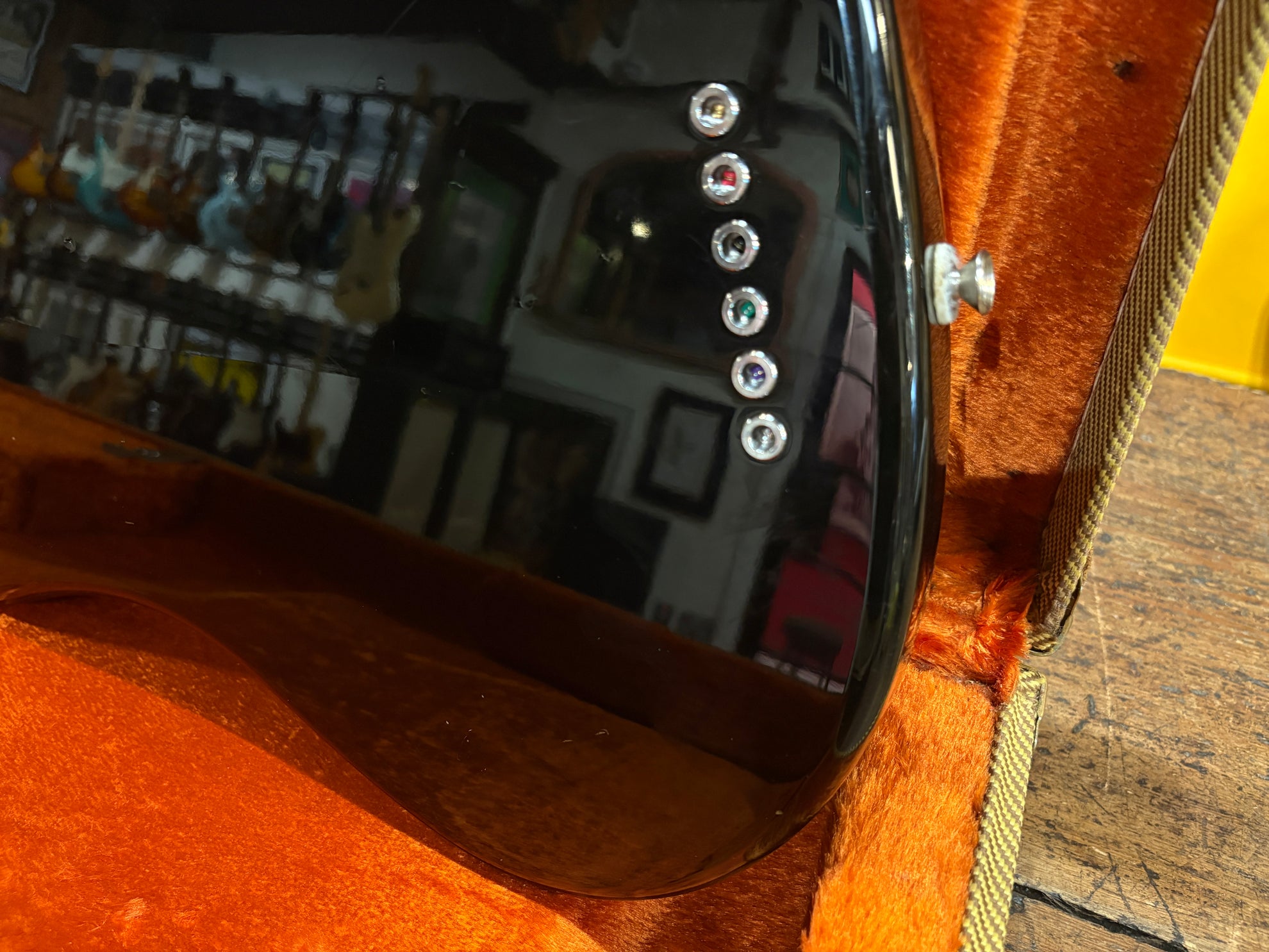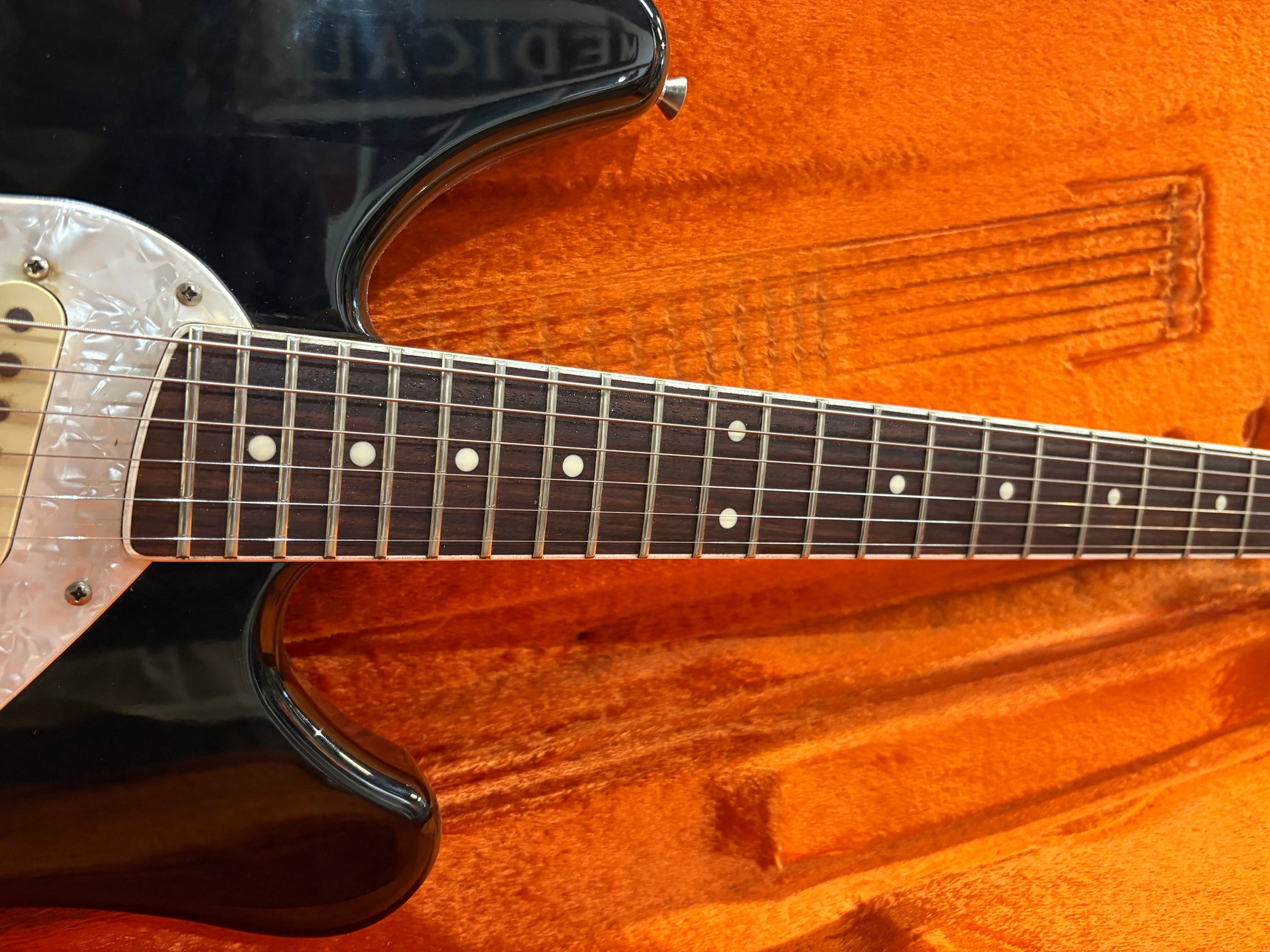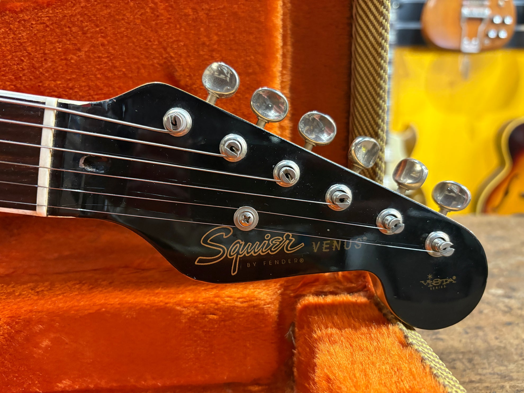 1997 Squier Vista Venus Black, in overall very good condition - some playwear, pictured. Made in Japan. Includes a gig bag.