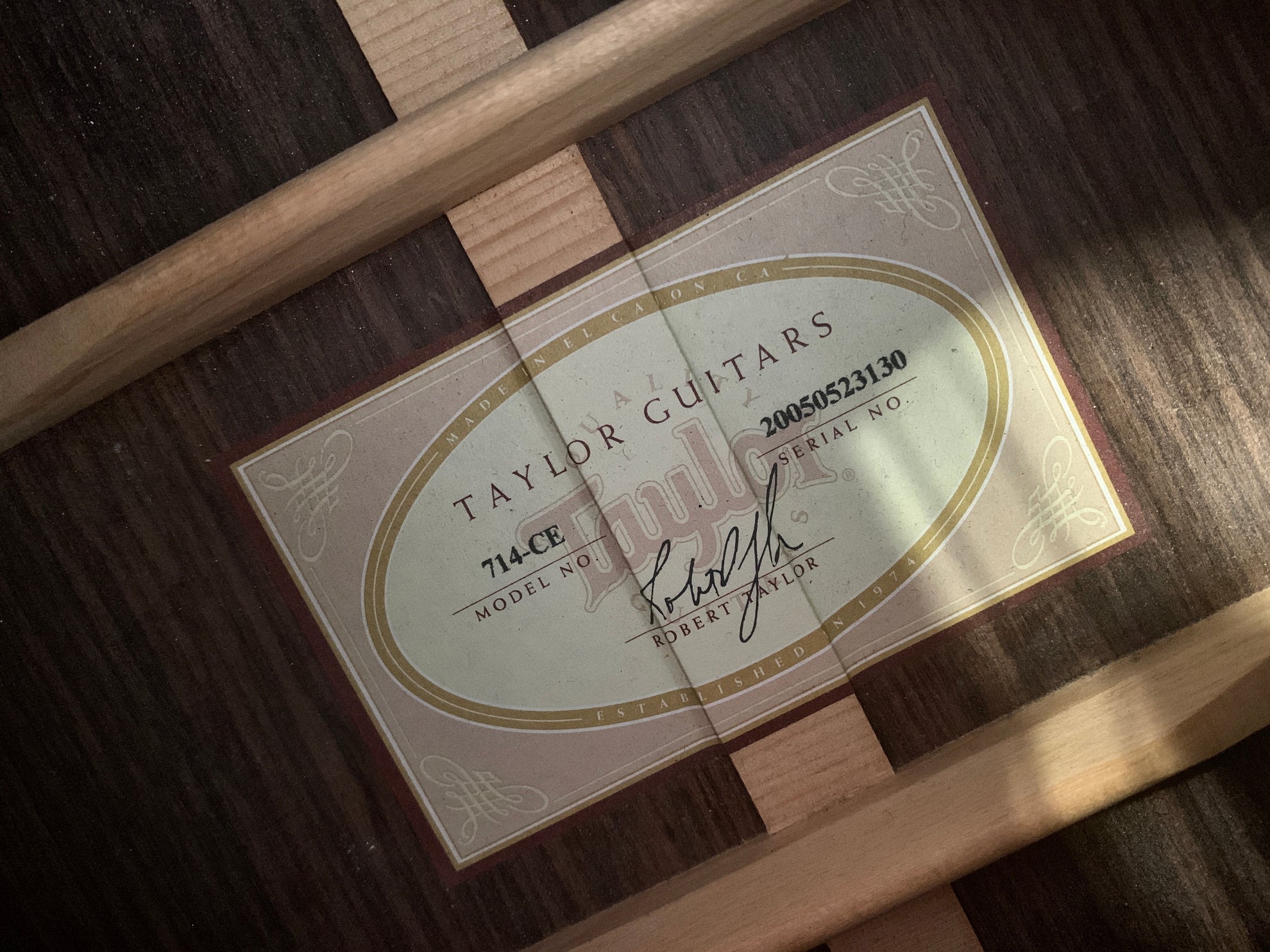 2005 Taylor 714ce, in very good used condition. Features Indian rosewood back and sides with a sitka spruce top. Includes OHSC.
