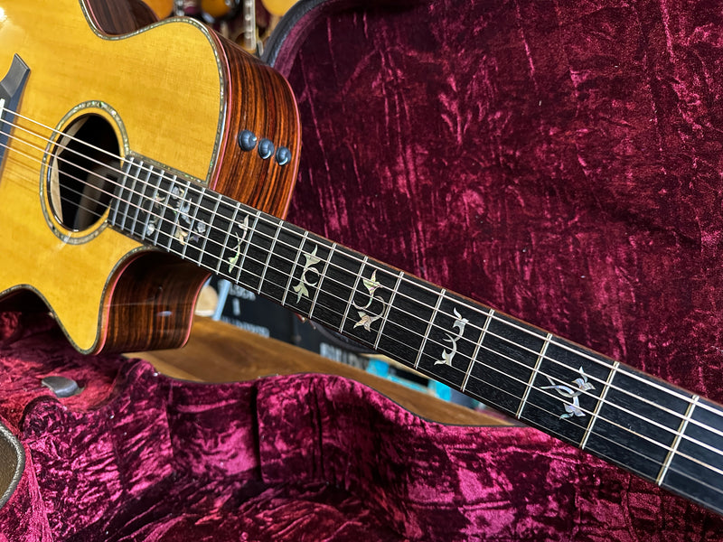2011 Taylor 914ce Grand Auditorium, in excellent used condition. The 900 series is Taylor's highest end line of Rosewood acoustics and this 914ce is a real gem. Constructed with Sitka Spruce top and East Indian Rosewood back and sides. Luxurious Paua appointments and gorgeous Cindy fretboard inlay. Includes OHSC.