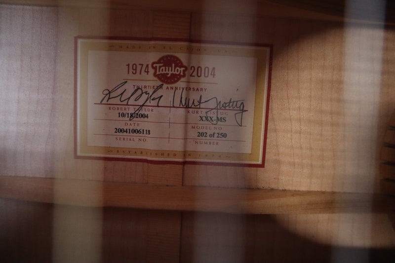 2004 Taylor XXX-MS 30th Anniversary, in very good used condition - some wear, pictured. Limited to 250 units. Includes OHSC.