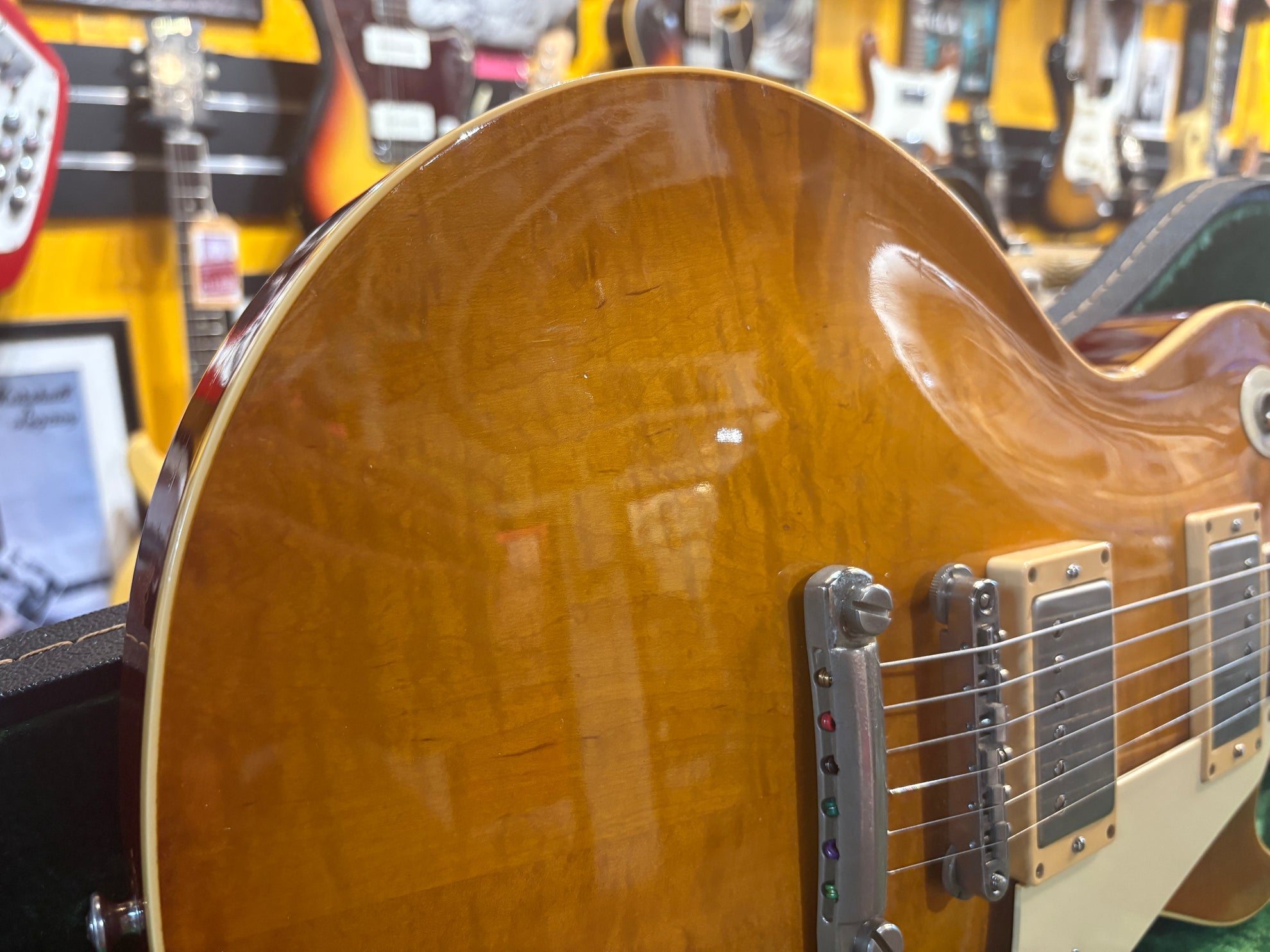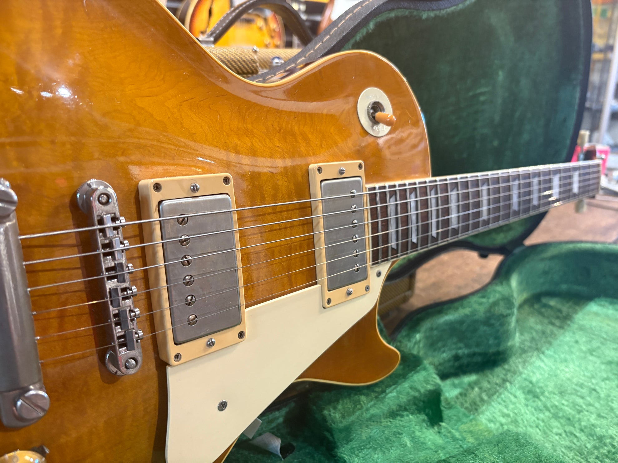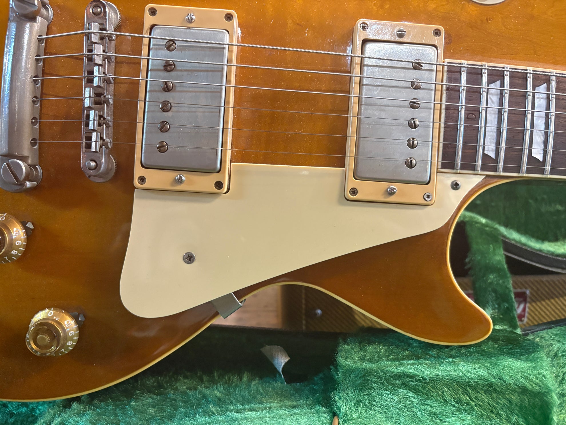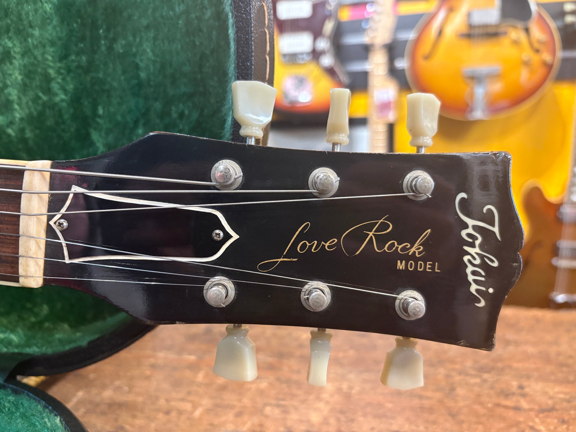 1983 Tokai LS-80 Love Rock Honeyburst, in great vintage condition. An absolutely phenomenal take on a '50's Lester, made in Japan. One of the finest interpretations of a '59 that we've played, full nitro finish and very accurate figured deep dish top. Pickups have been changed to a set of Brandonwound humbuckers, which sound great. Includes OHSC and original pickups.