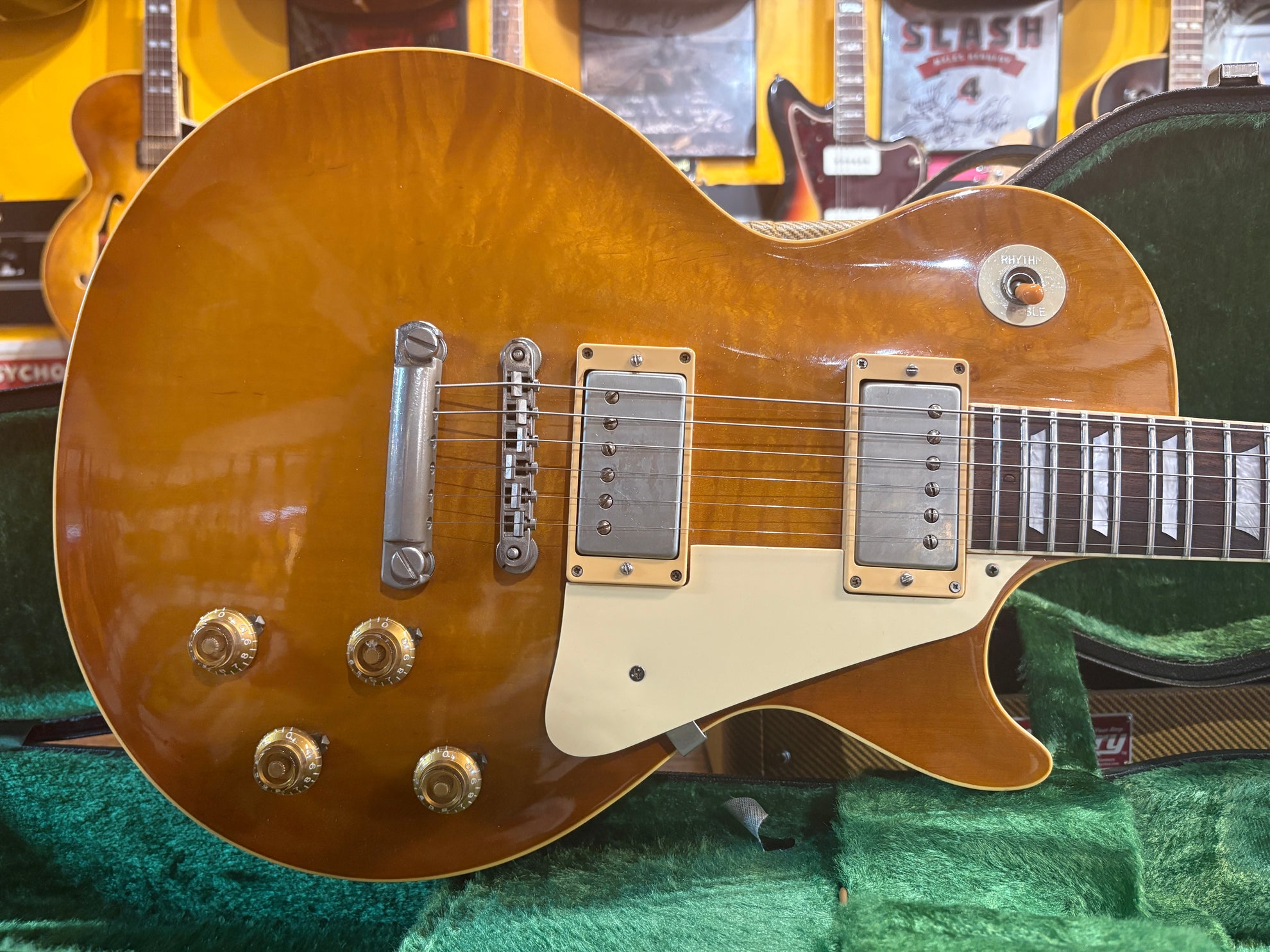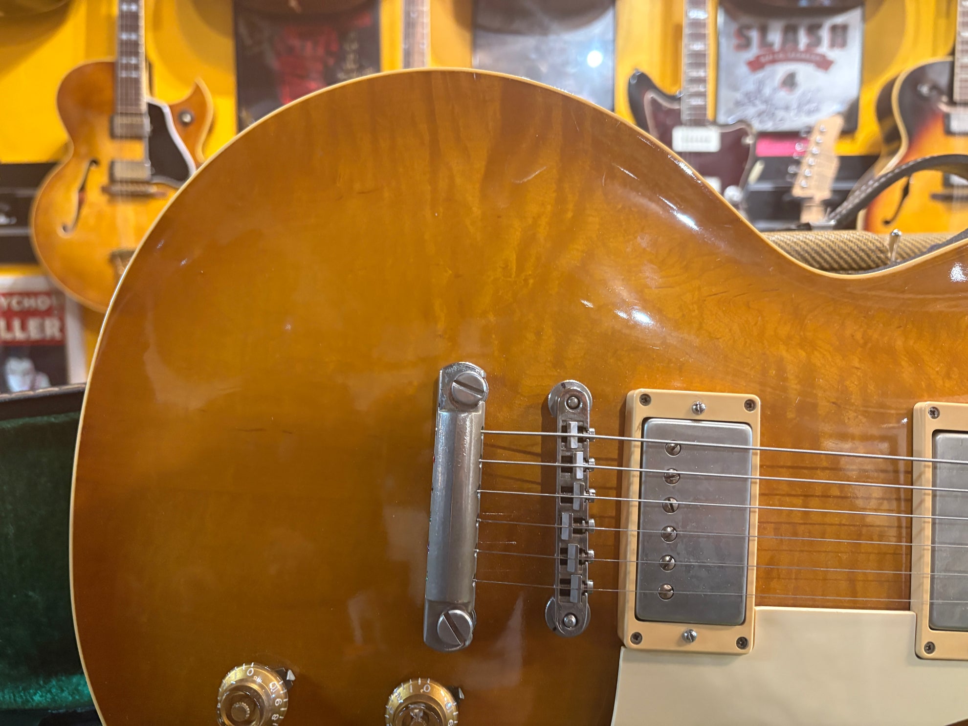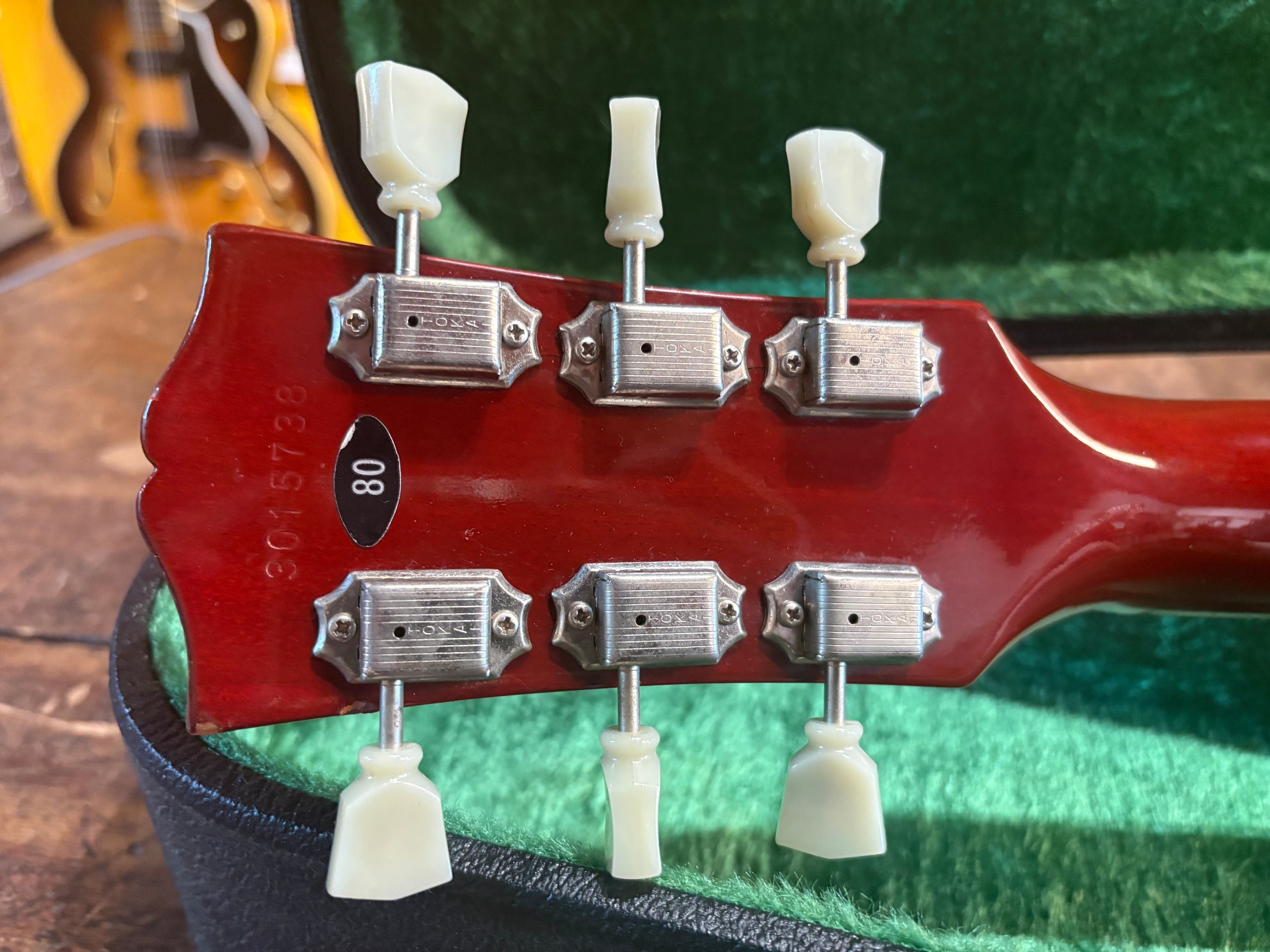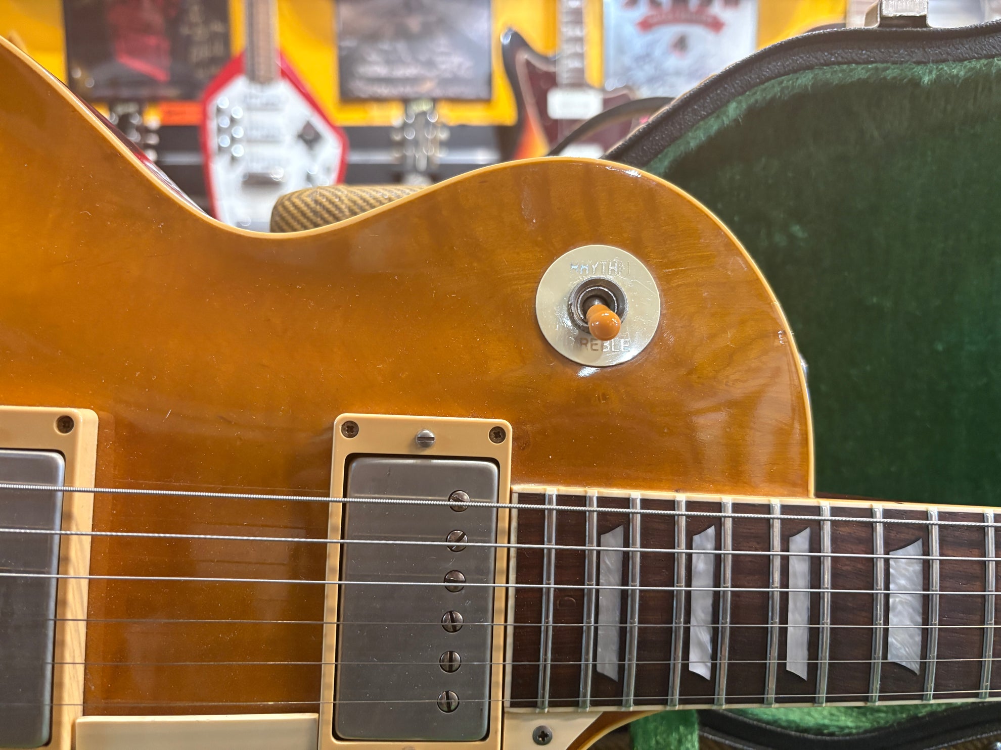 1983 Tokai LS-80 Love Rock Honeyburst, in great vintage condition. An absolutely phenomenal take on a '50's Lester, made in Japan. One of the finest interpretations of a '59 that we've played, full nitro finish and very accurate figured deep dish top. Pickups have been changed to a set of Brandonwound humbuckers, which sound great. Includes OHSC and original pickups.